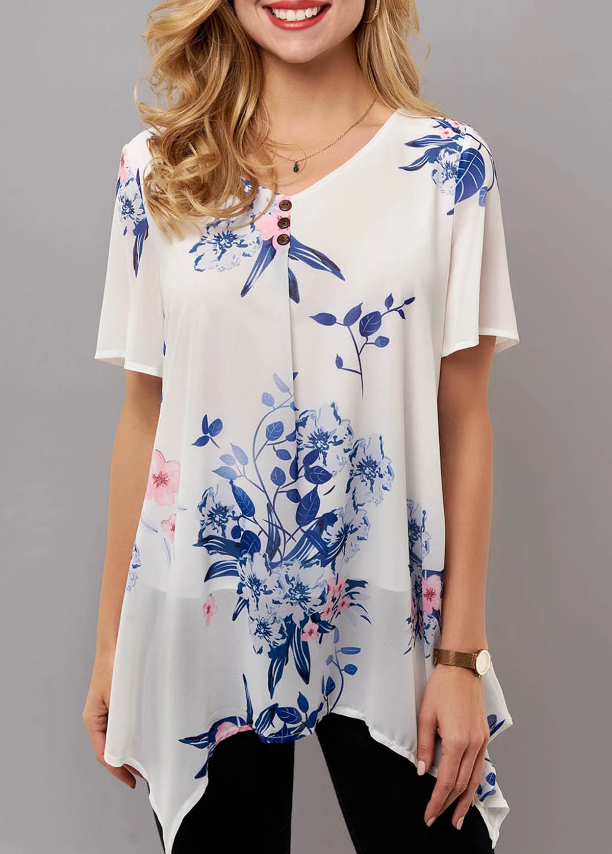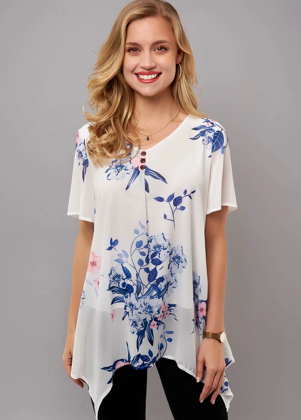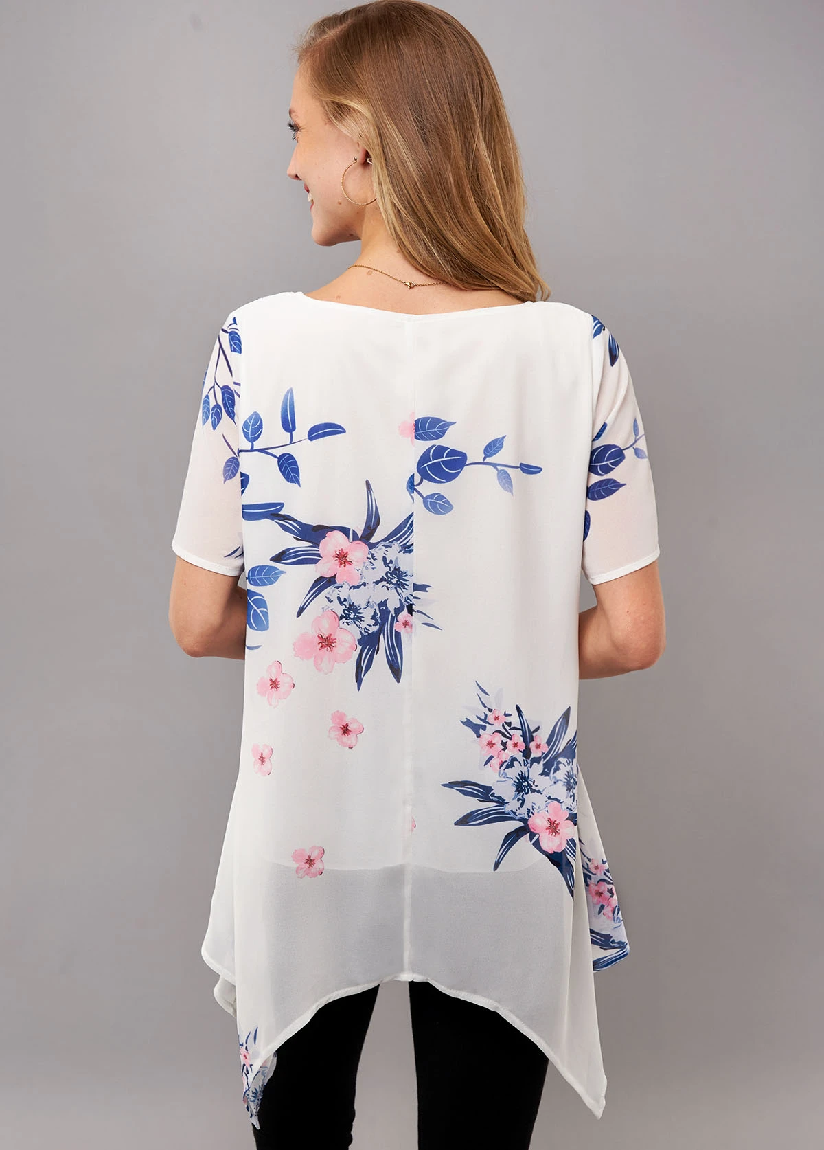 Asymmetric Hem Floral Print Short Sleeve T Shirt
