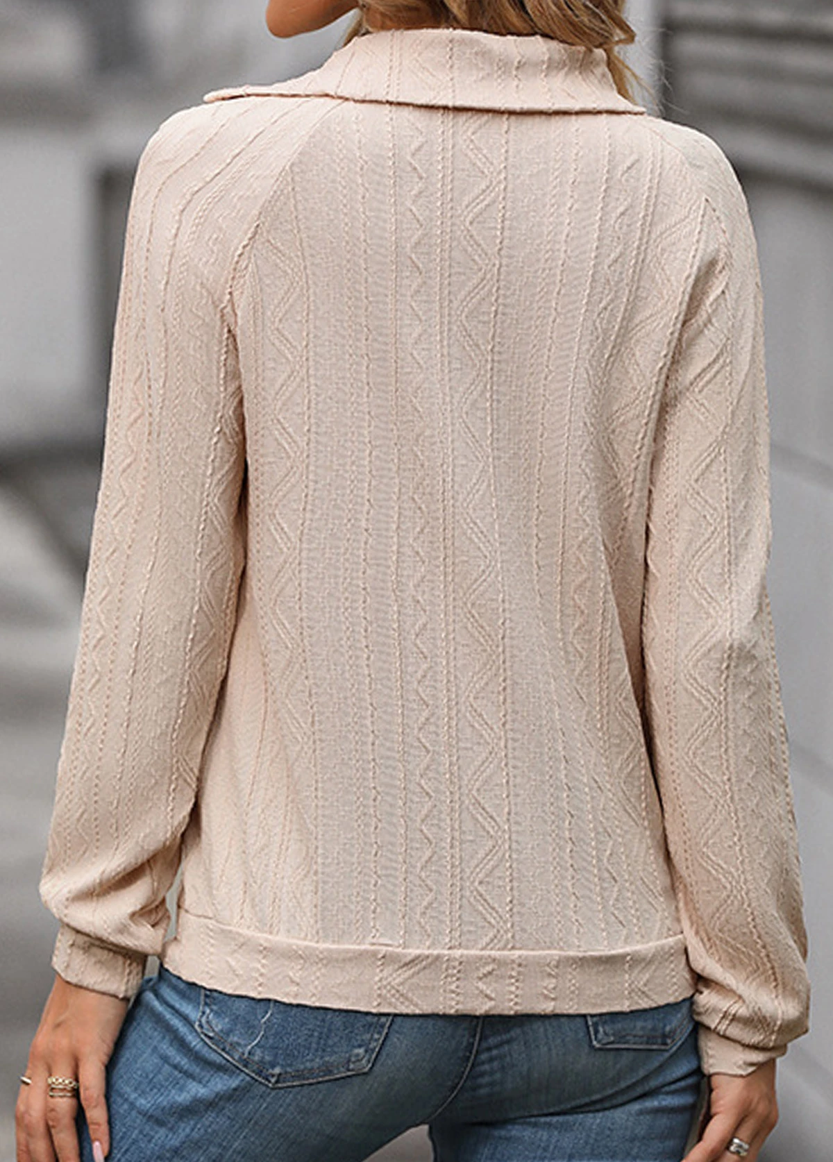 Beige Button Long Sleeve Asymmetrical Neck Sweatshirt
