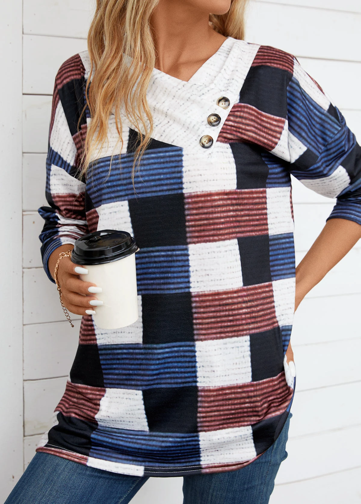 Be the first to review “Beige Patchwork Geometric Print Long Sleeve T Shirt” Cancel reply