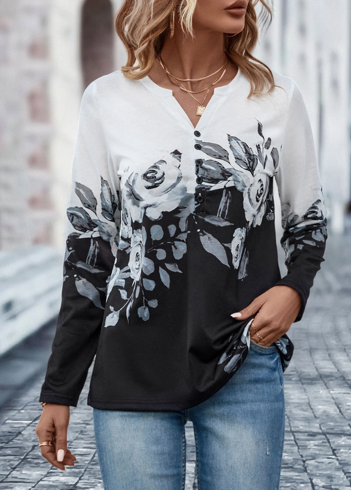 Be the first to review “Black Button Floral Print Long Sleeve T Shirt” Cancel reply