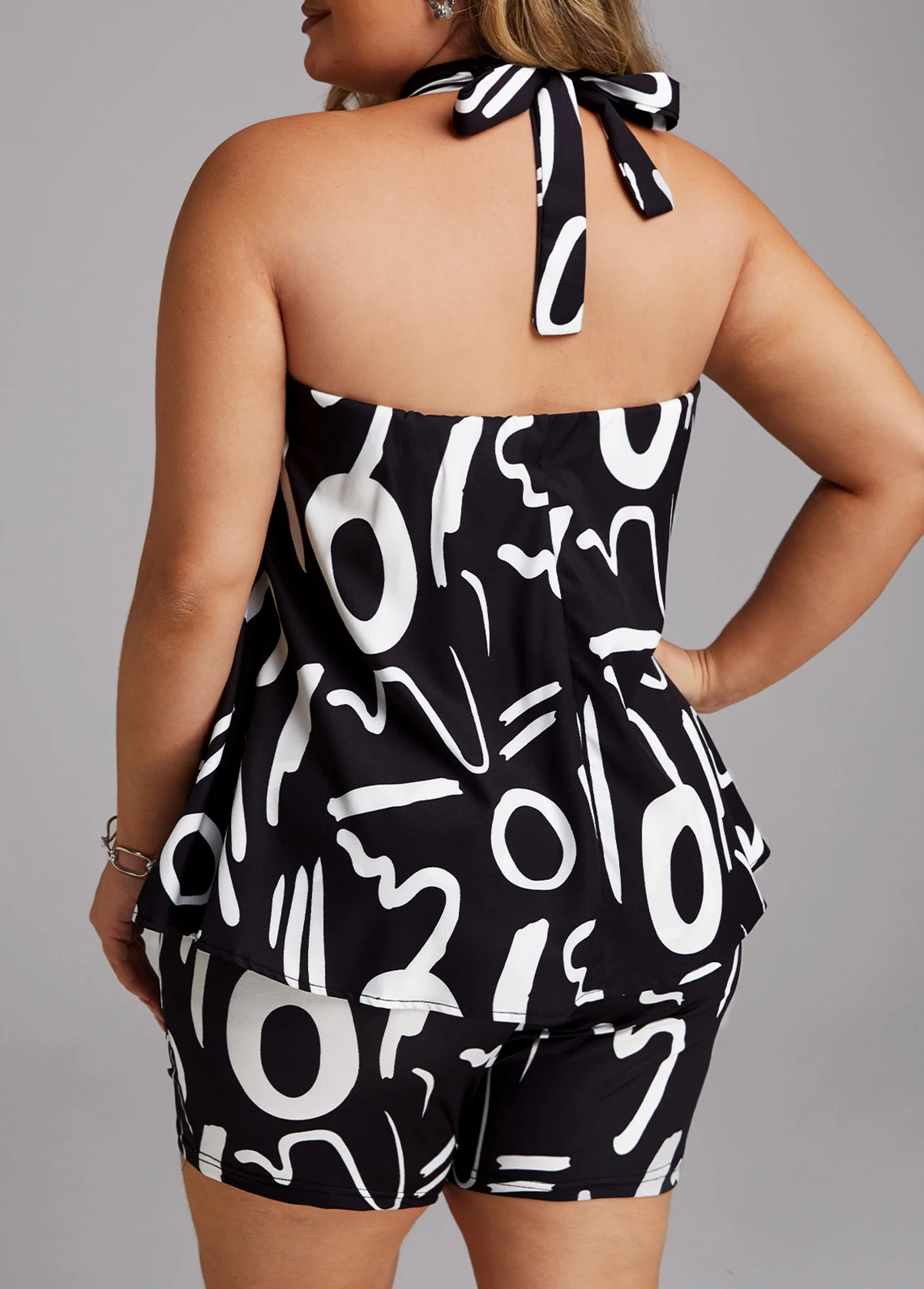 Black Criss Cross Graffiti Print Sleeveless Top And Shorts