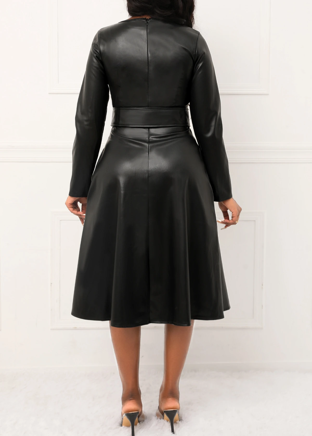 Be the first to review “Black Faux Leather Belted Long Sleeve Dress” Cancel reply