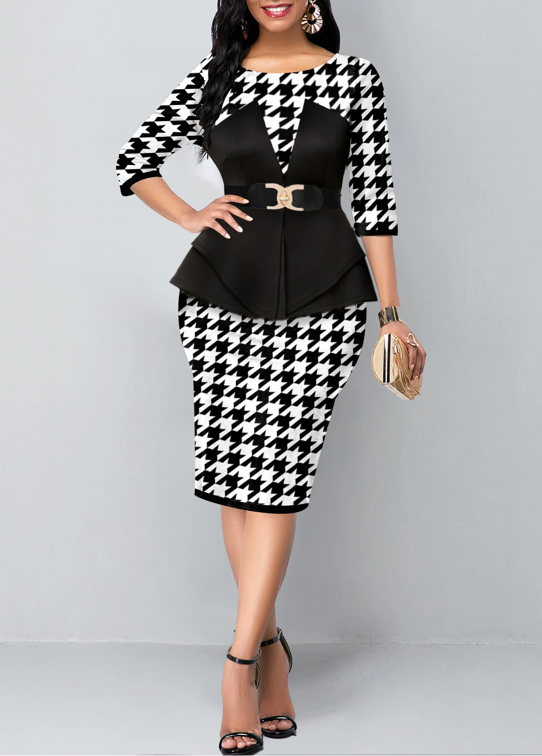 Be the first to review “Black Faux Two Piece Houndstooth Print Dress” Cancel reply