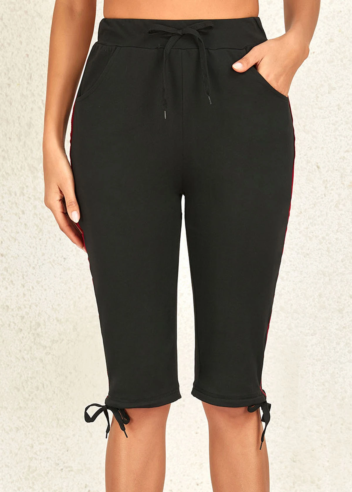 Black High Waisted Knee Length Drawastring Leggings