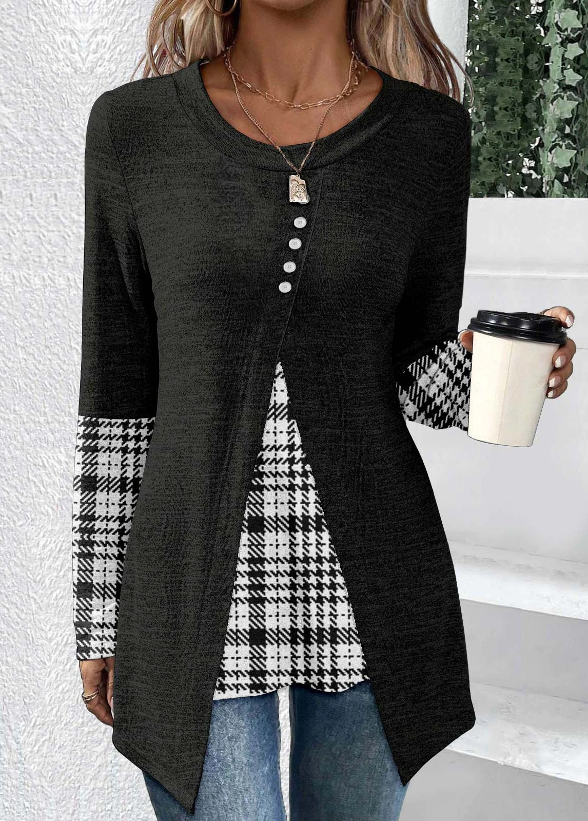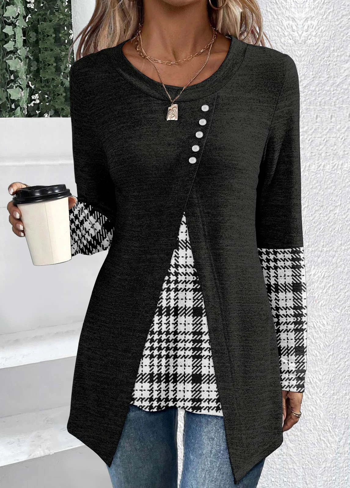 Be the first to review “Black Patchwork Plaid Long Sleeve T Shirt” Cancel reply