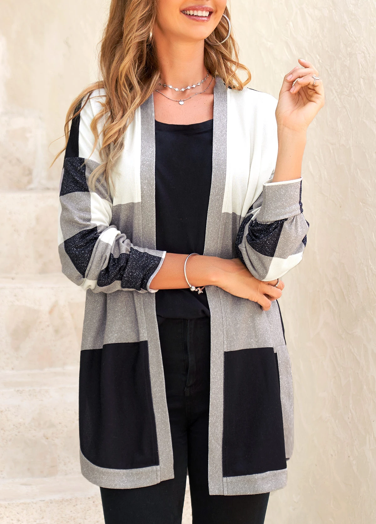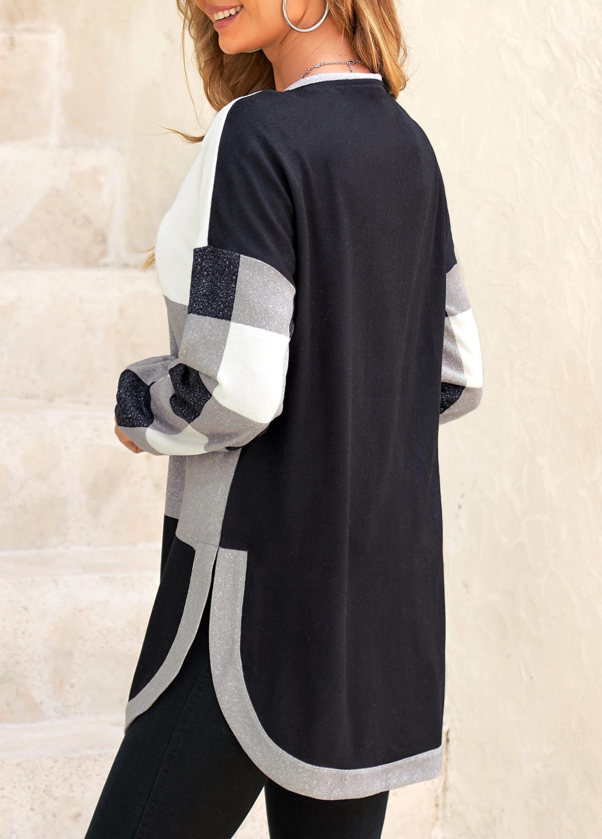 Black Split Plaid Long Sleeve Coat