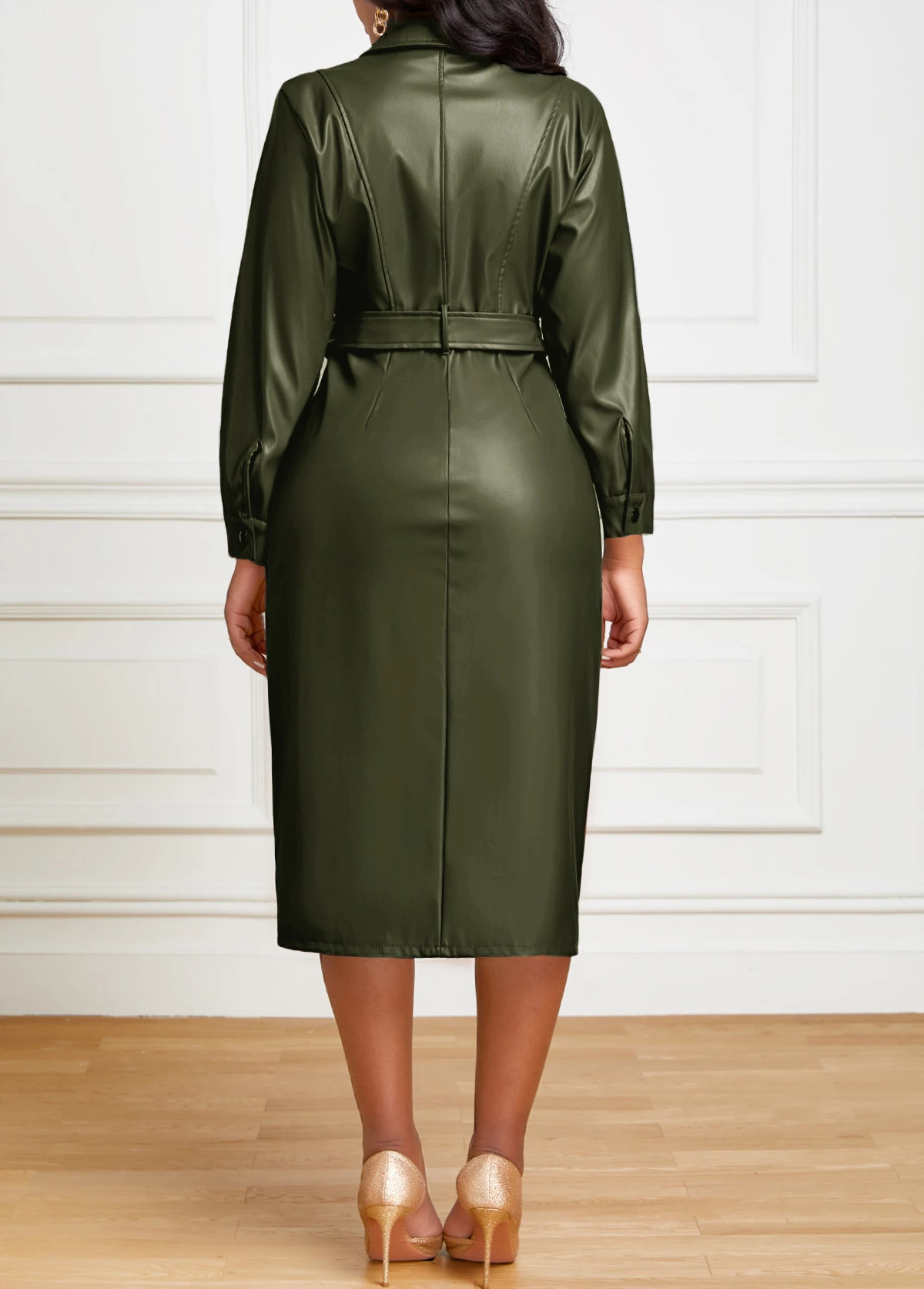 Be the first to review “Blackish Green Belted Long Sleeve Bodycon Dress” Cancel reply