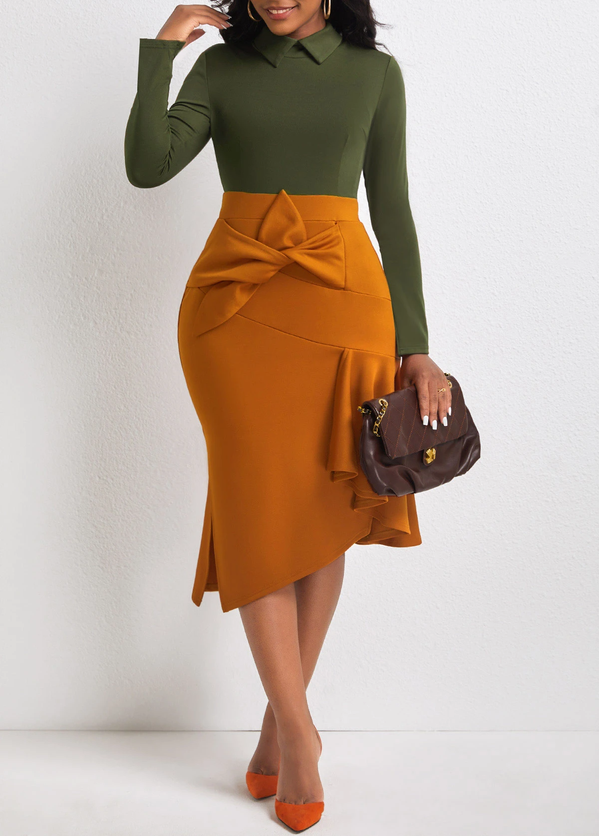 Be the first to review “Blackish Green Bowknot Contrast Side Slit Dress” Cancel reply