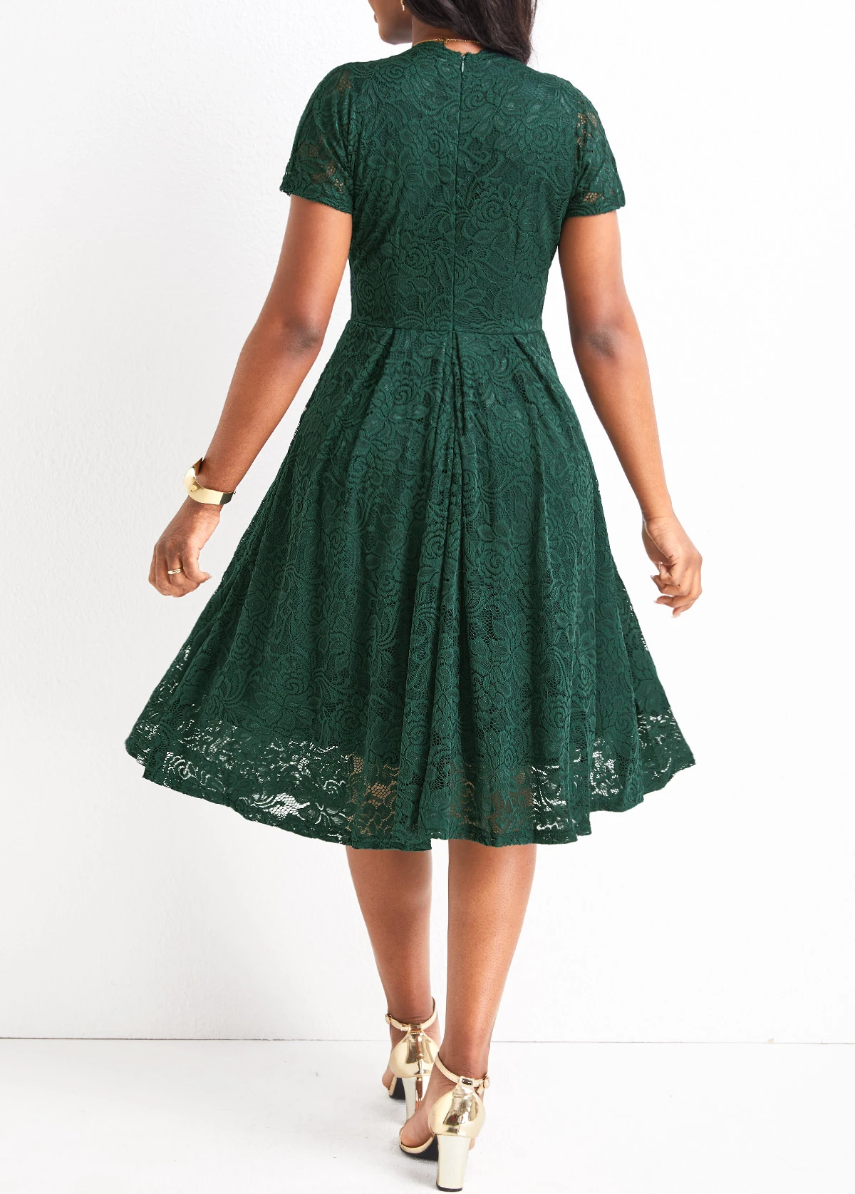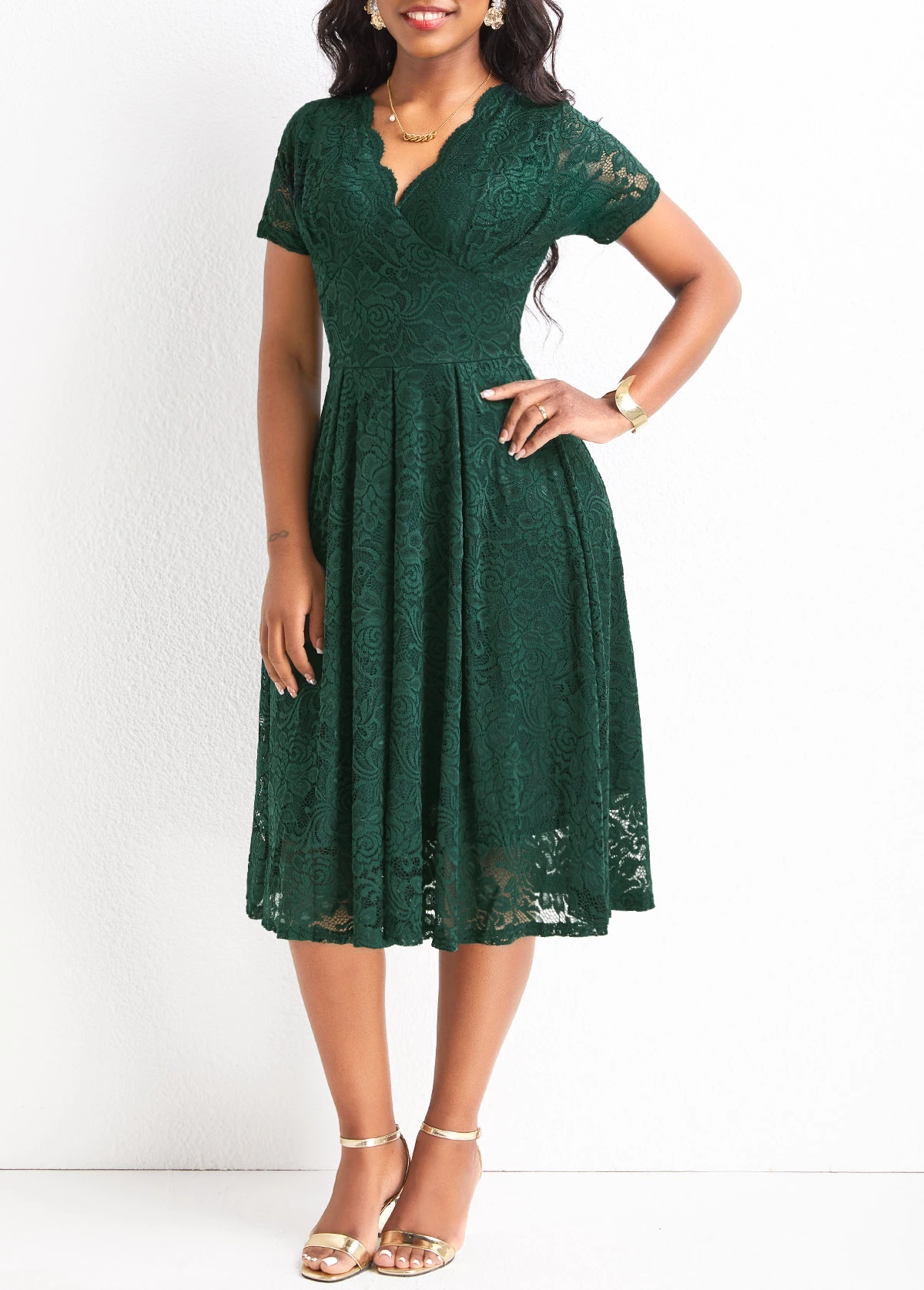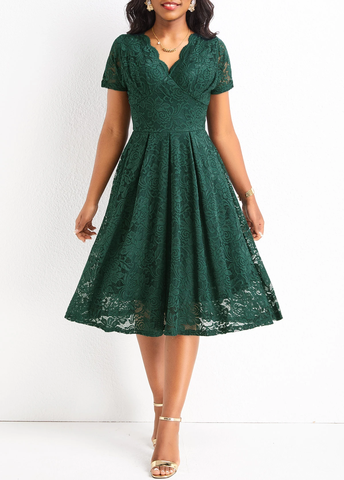 Be the first to review “Blackish Green Lace Short Sleeve V Neck Dress” Cancel reply
