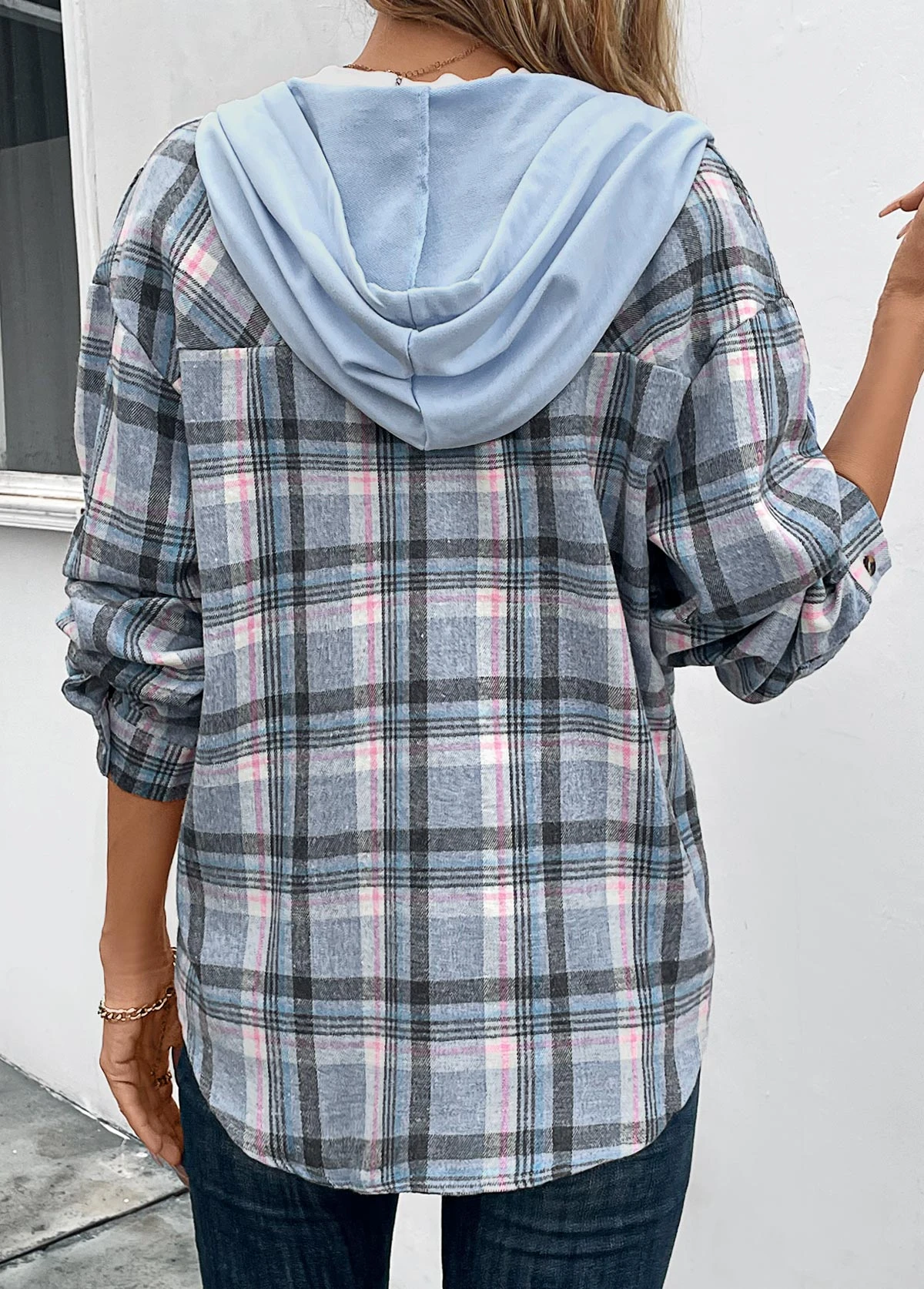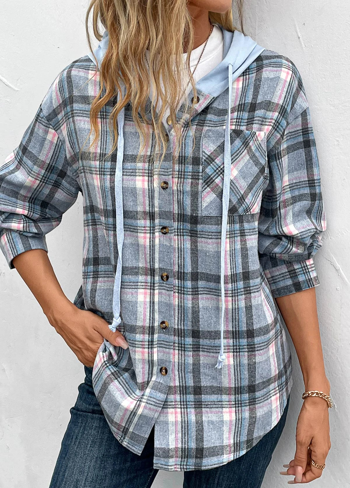 Be the first to review “Blue Drawstring Plaid Long Sleeve Hooded Coat” Cancel reply