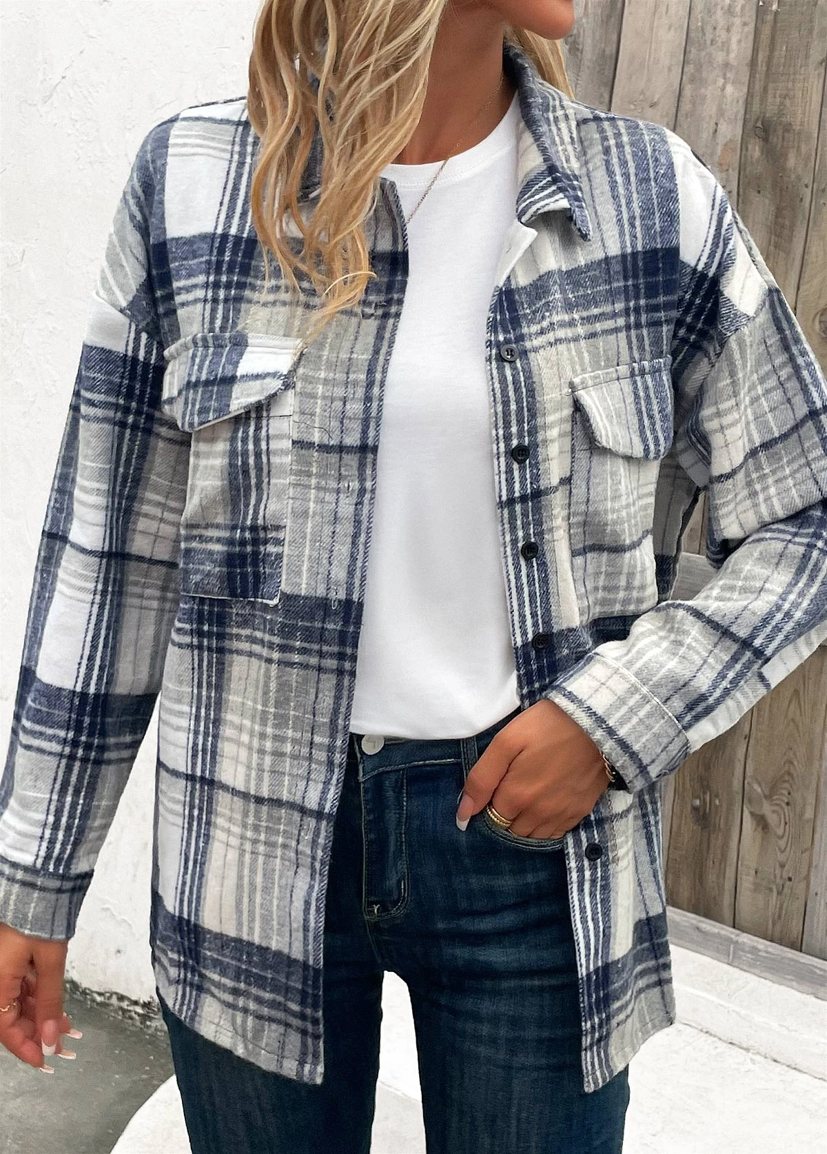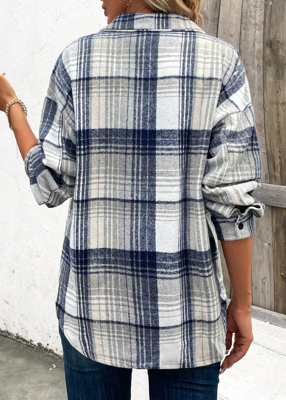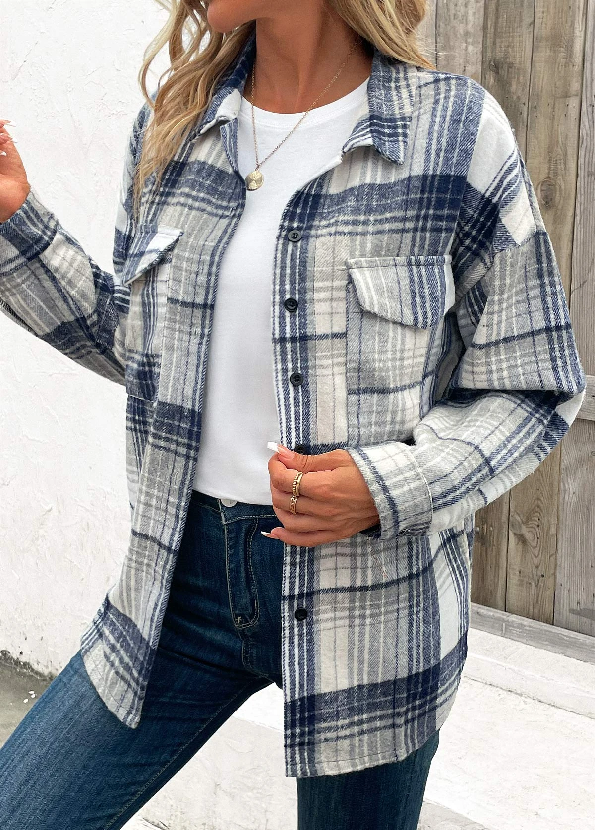 Be the first to review “Blue Patchwork Plaid Turn Down Collar Coat” Cancel reply