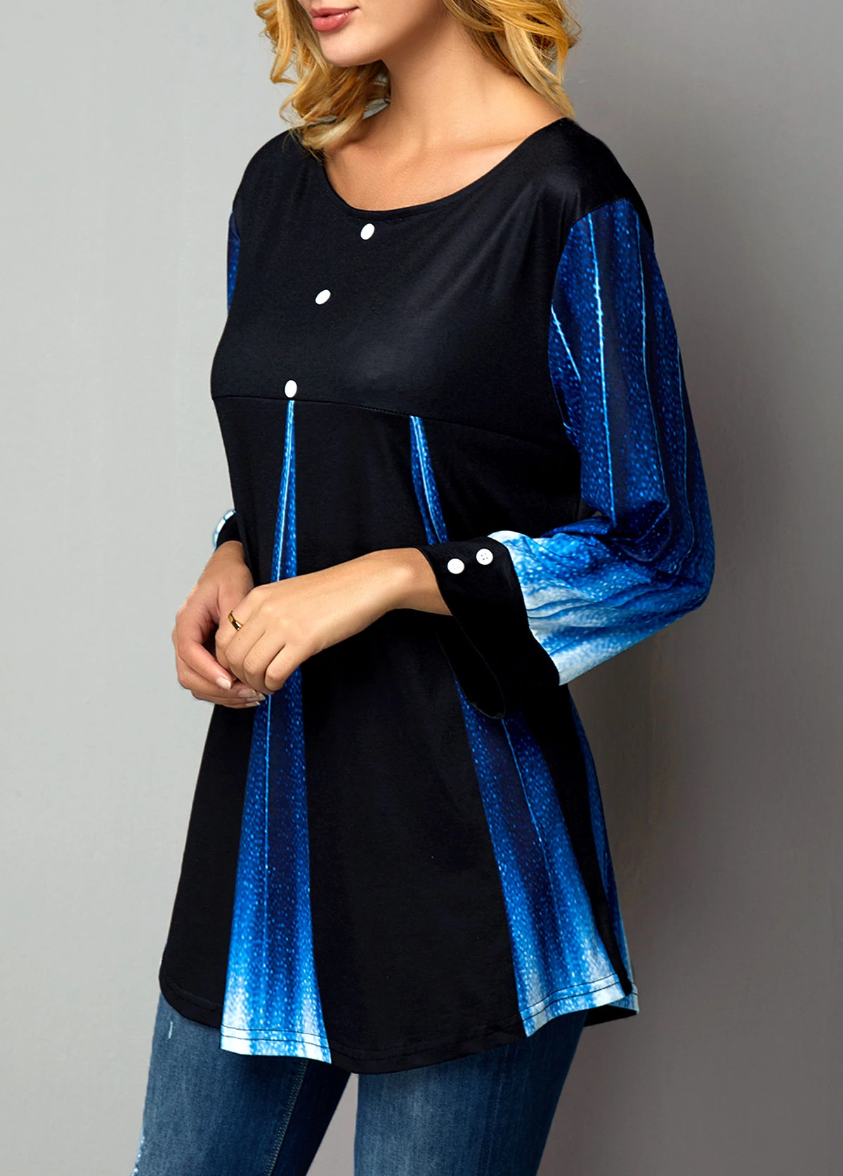 Be the first to review “Button Detail Printed Gradient Round Neck T Shirt” Cancel reply