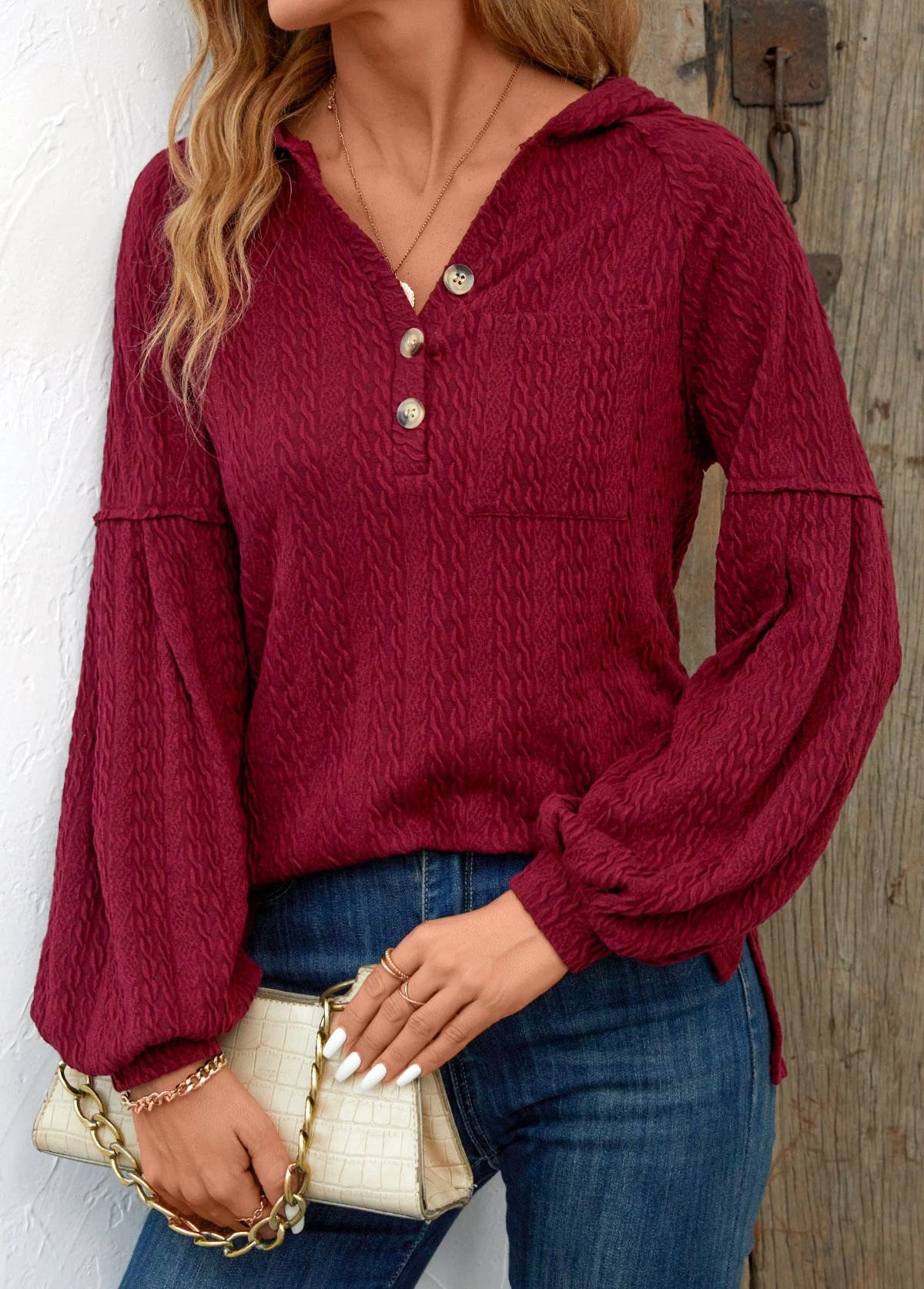 Be the first to review “Button Wine Red Pocket Long Sleeve Hoodie” Cancel reply