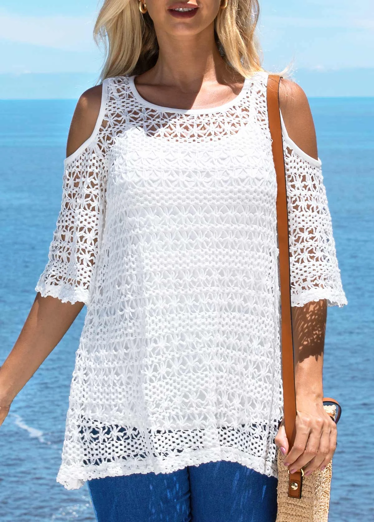 Cold Shoulder Woven Fabric T Shirt And White Tank Top