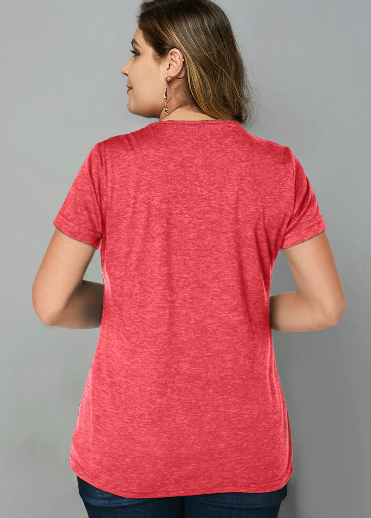 Crinkle Chest Short Sleeve Coral Red T Shirt