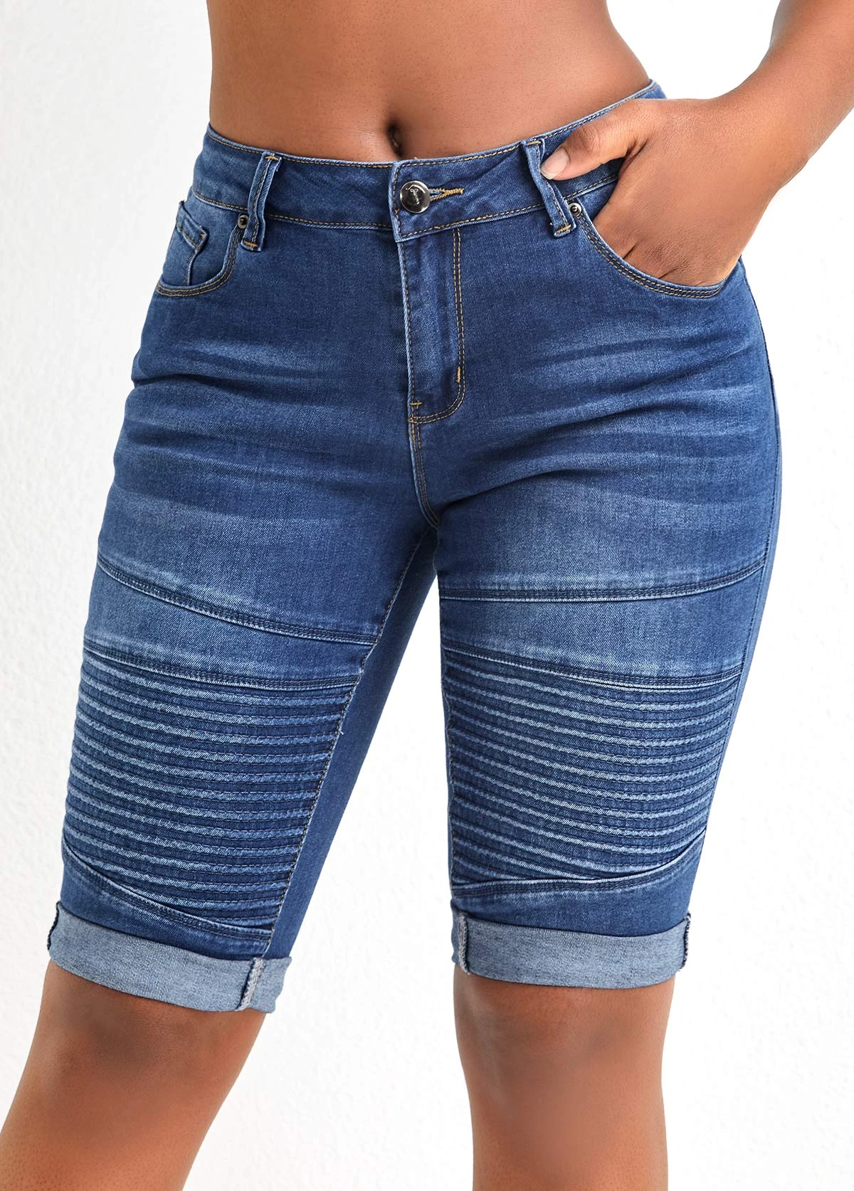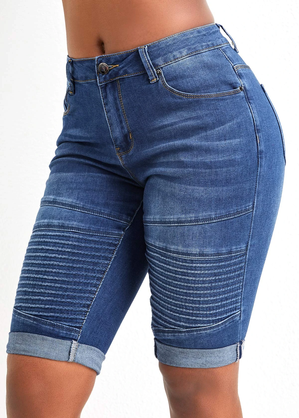 Dark Blue Pocket Skinny Zipper Fly Shorts