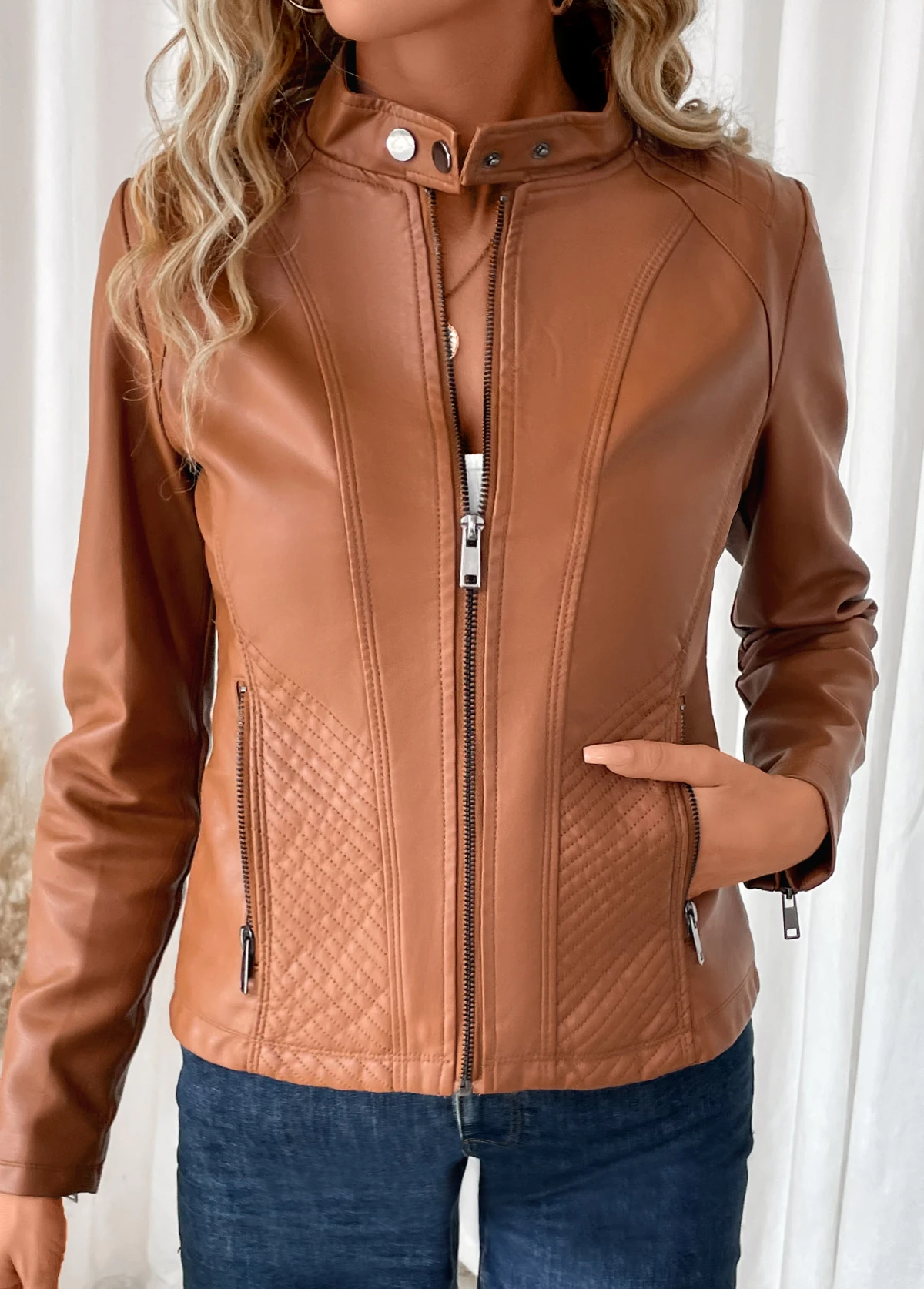 - Design Selling Point :Pocket,Zipper,Button,Faux Leather