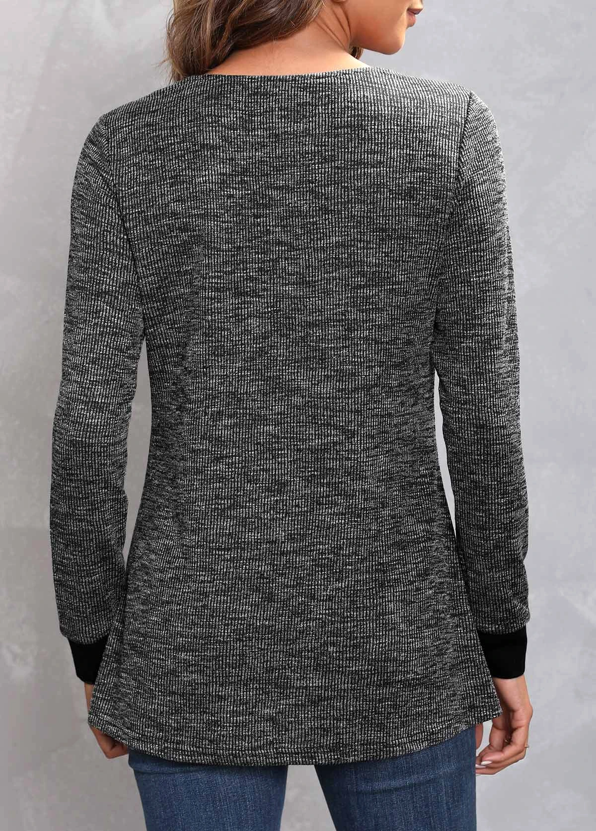 Dark Grey Marl Decorative Button V Neck T Shirt