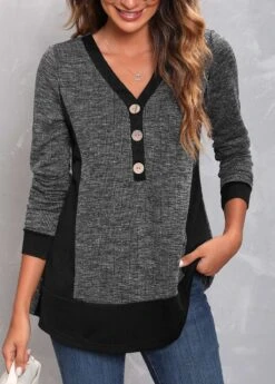 Be the first to review “Dark Grey Marl Decorative Button V Neck T Shirt” Cancel reply