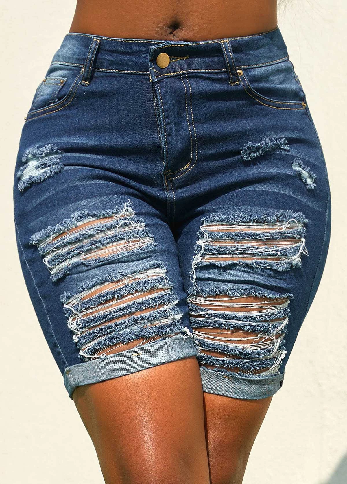 Be the first to review “Denim Blue Hole Skinny Zipper Fly Shorts” Cancel reply