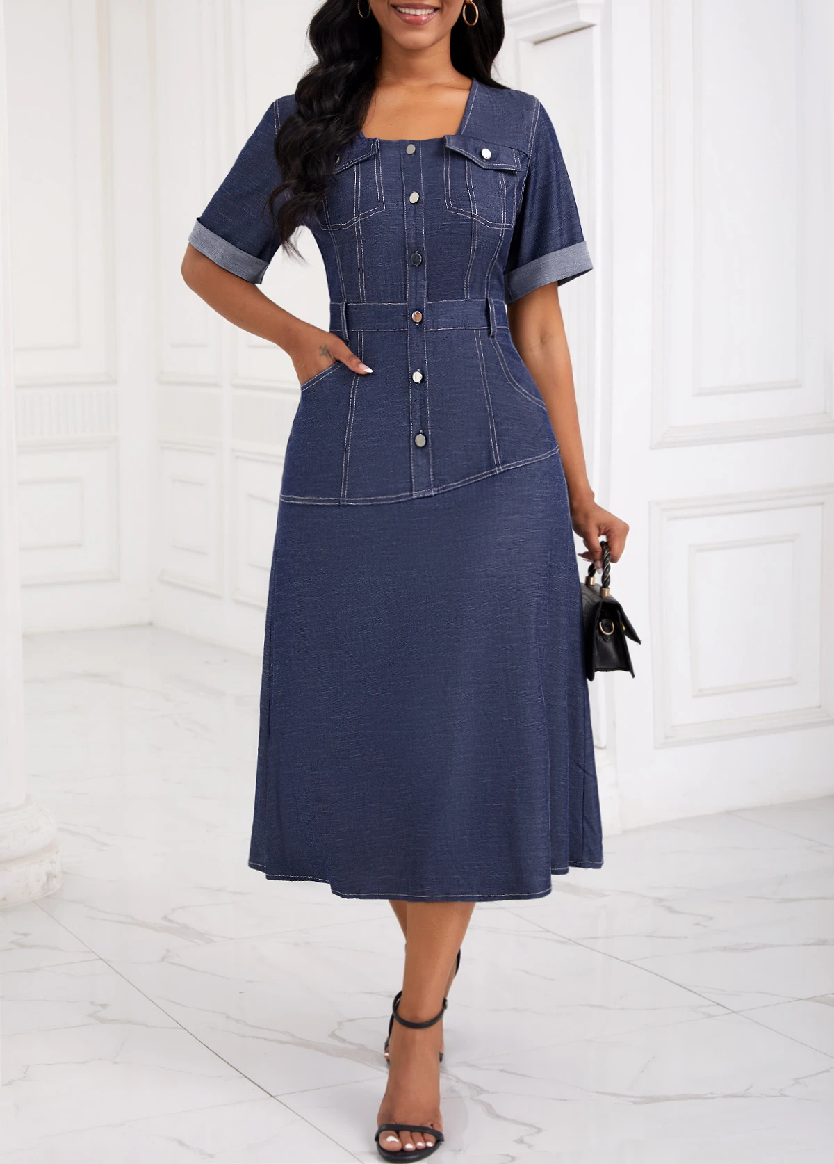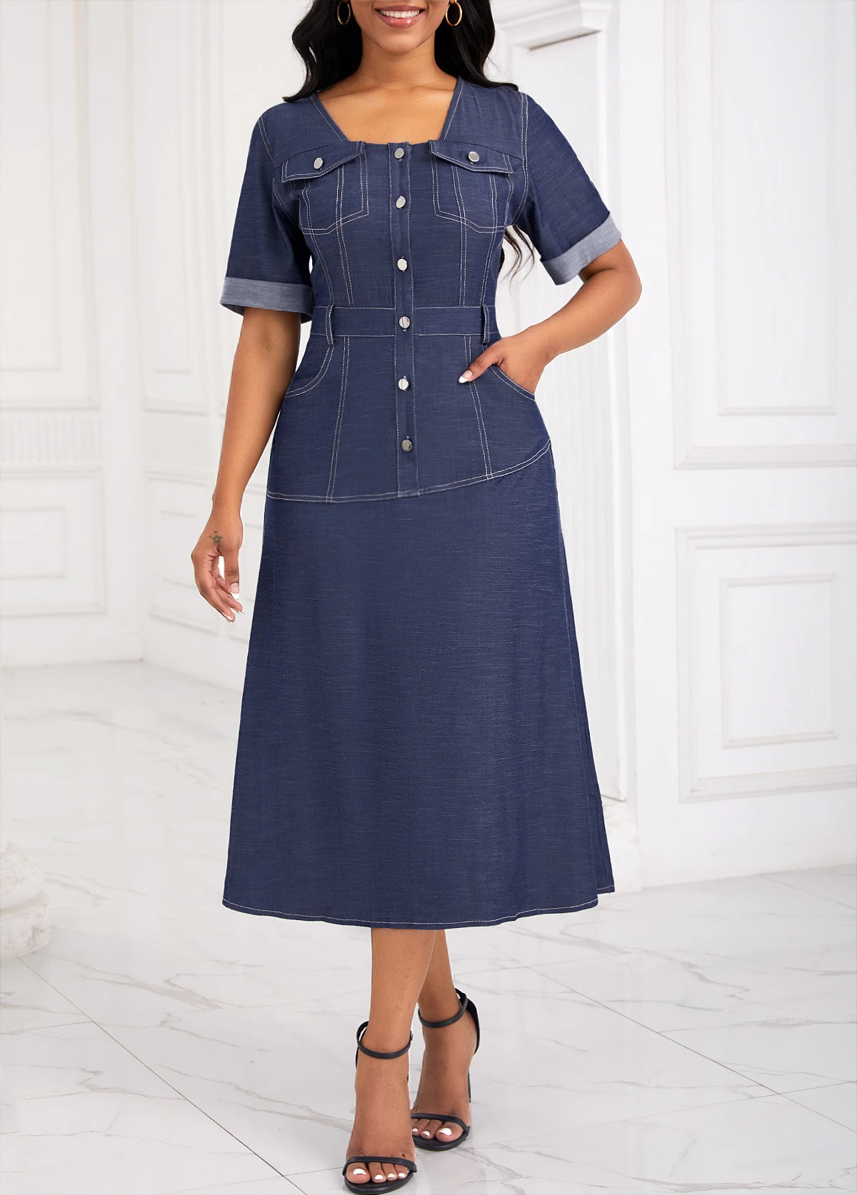 Be the first to review “Denim Blue Pocket Button Detail Short Sleeve Dress” Cancel reply