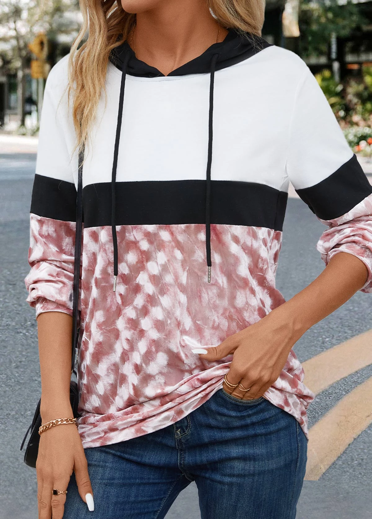 Be the first to review “Drawstring Pink Patchwork Long Sleeve Hoodie” Cancel reply