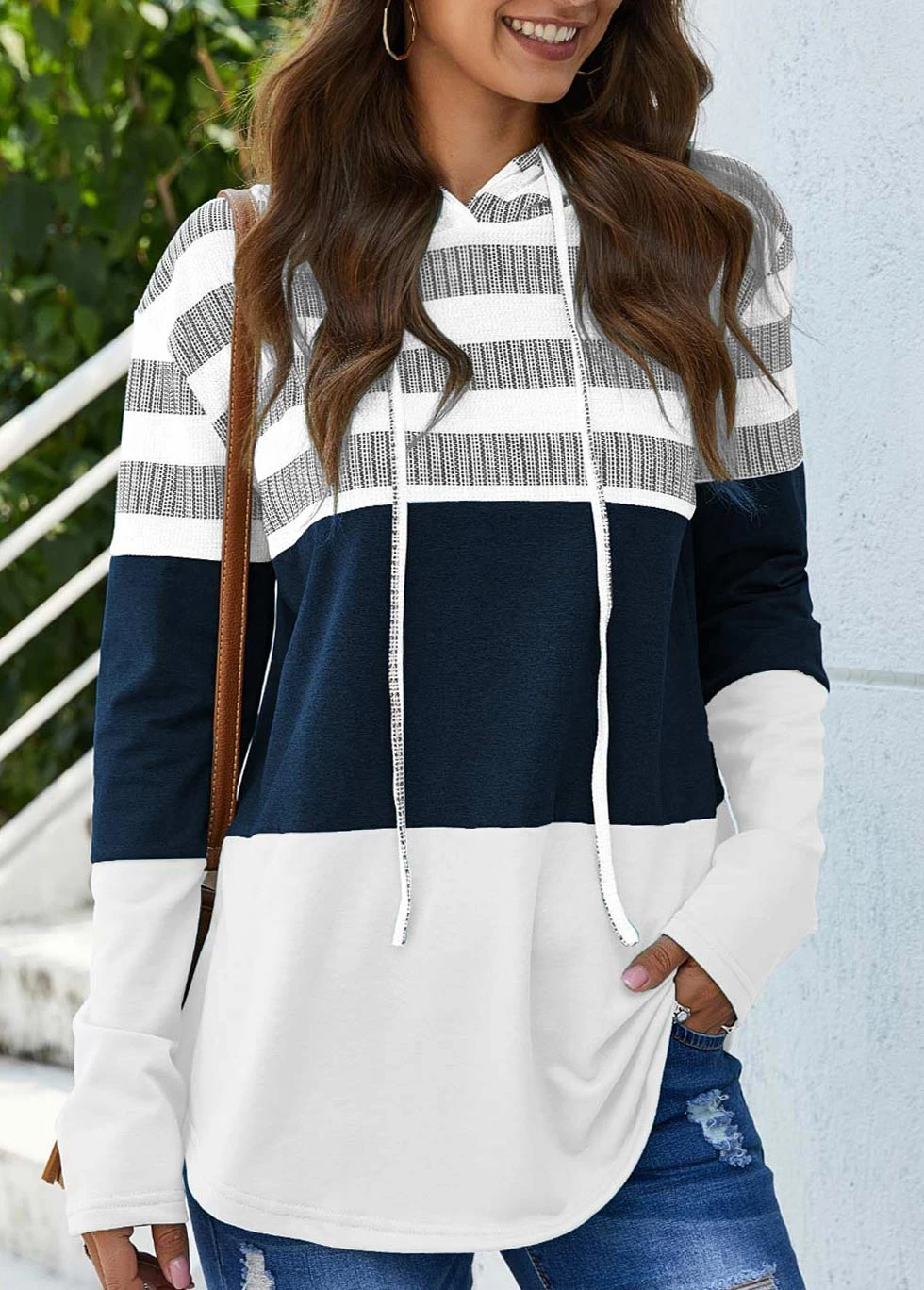 Be the first to review “Drawstring Stripe Print Long Sleeve White Hoodie” Cancel reply