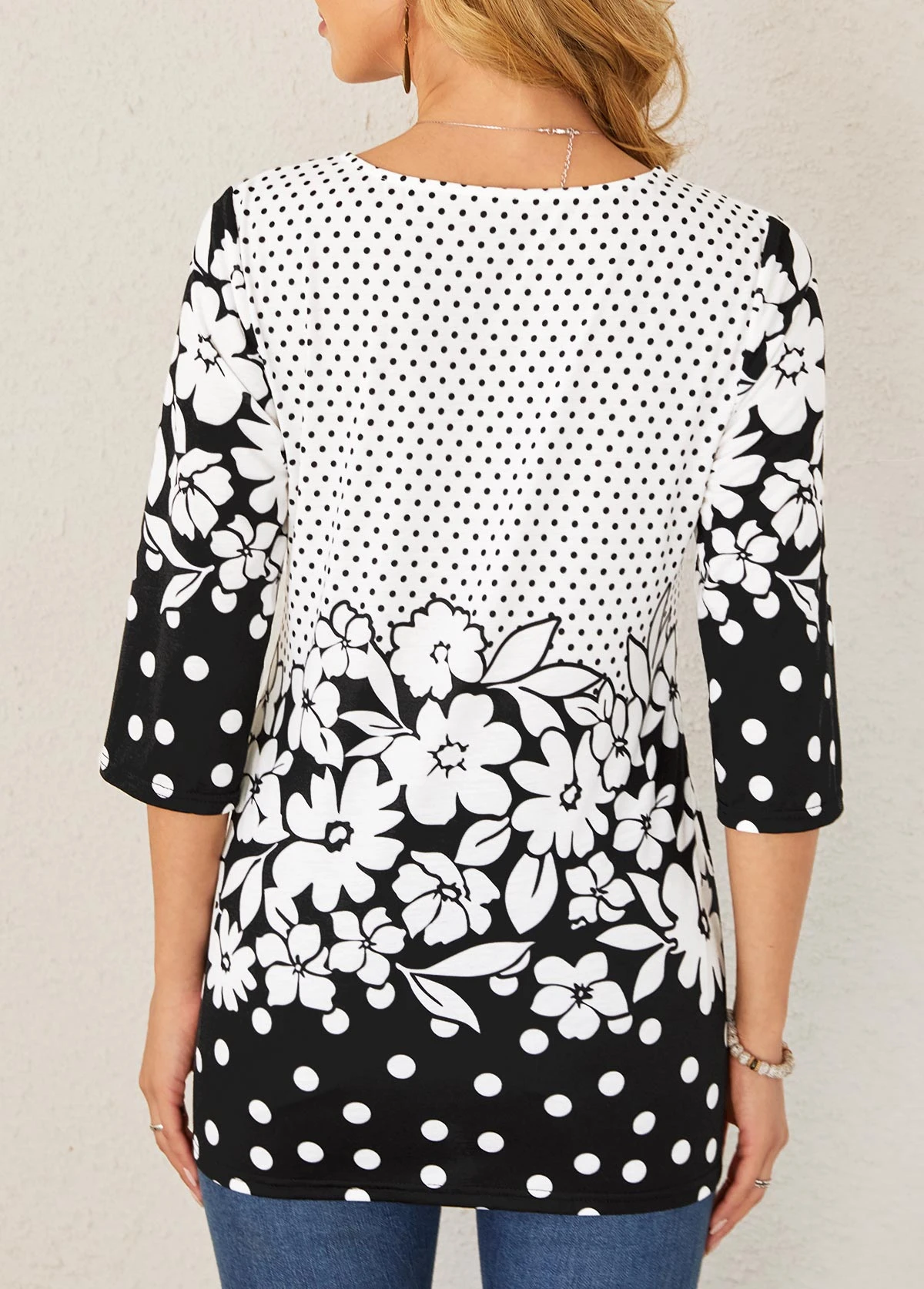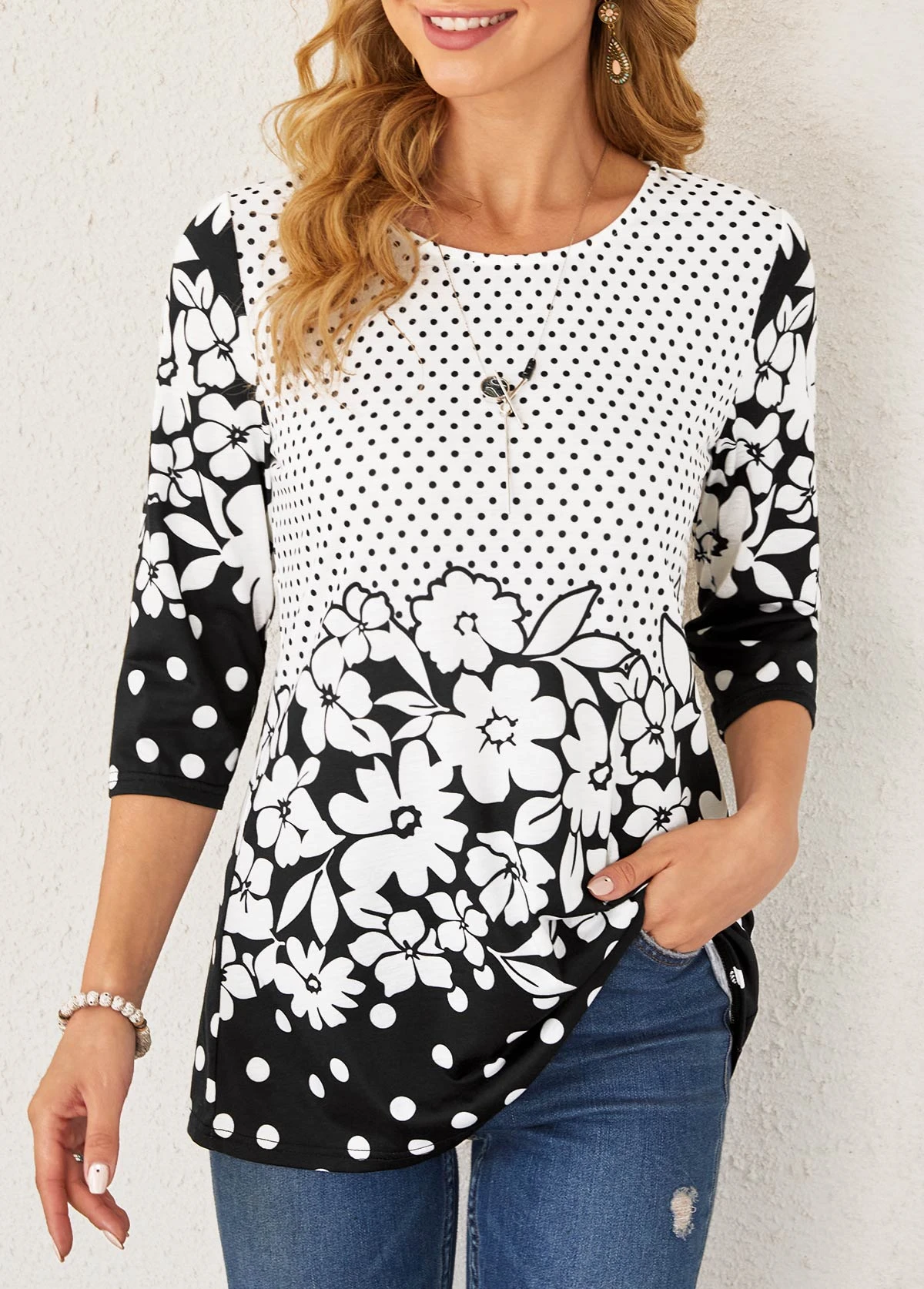 Be the first to review “Floral Print Polka Dot Color Block T Shirt” Cancel reply