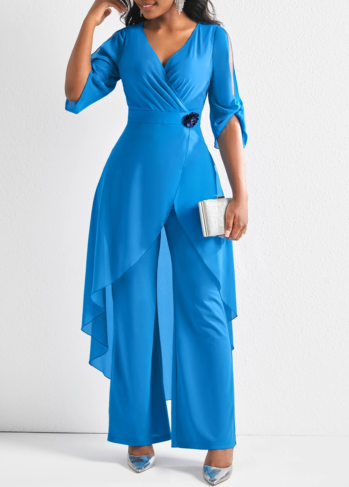 Flower Decoration Chiffon Light Blue Jumpsuit