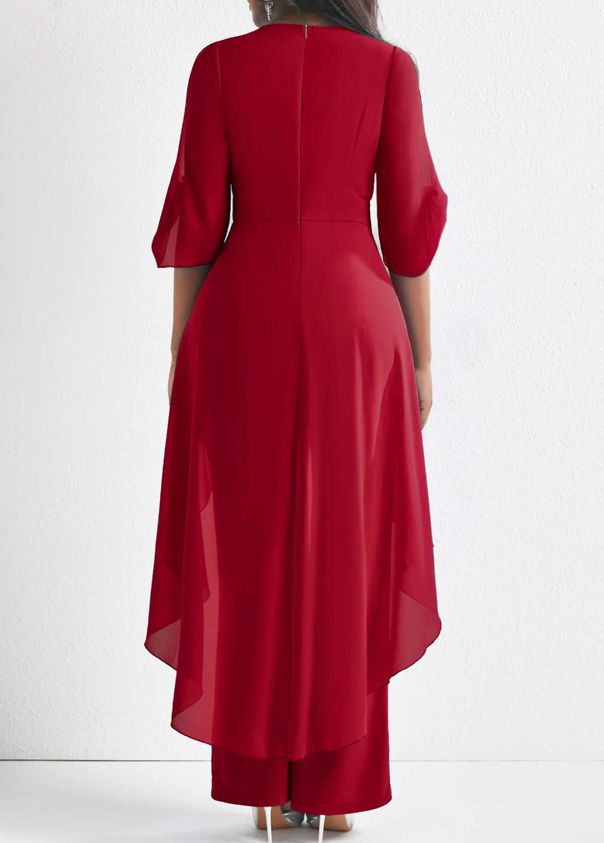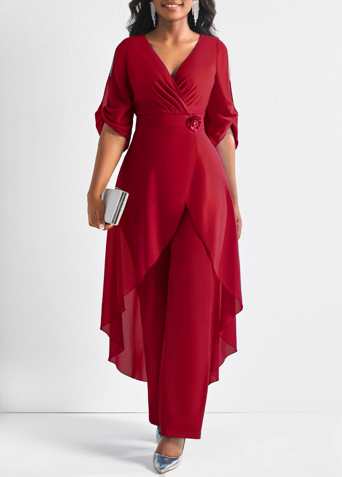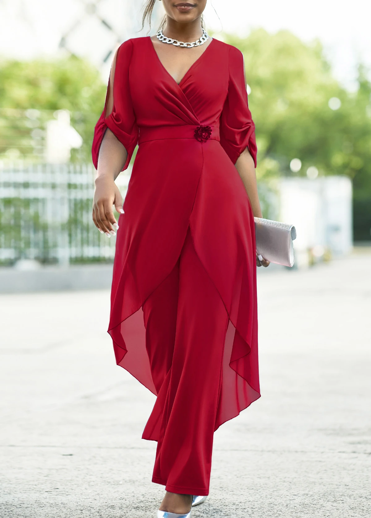 Flower Decoration Chiffon Wine Red Jumpsuit