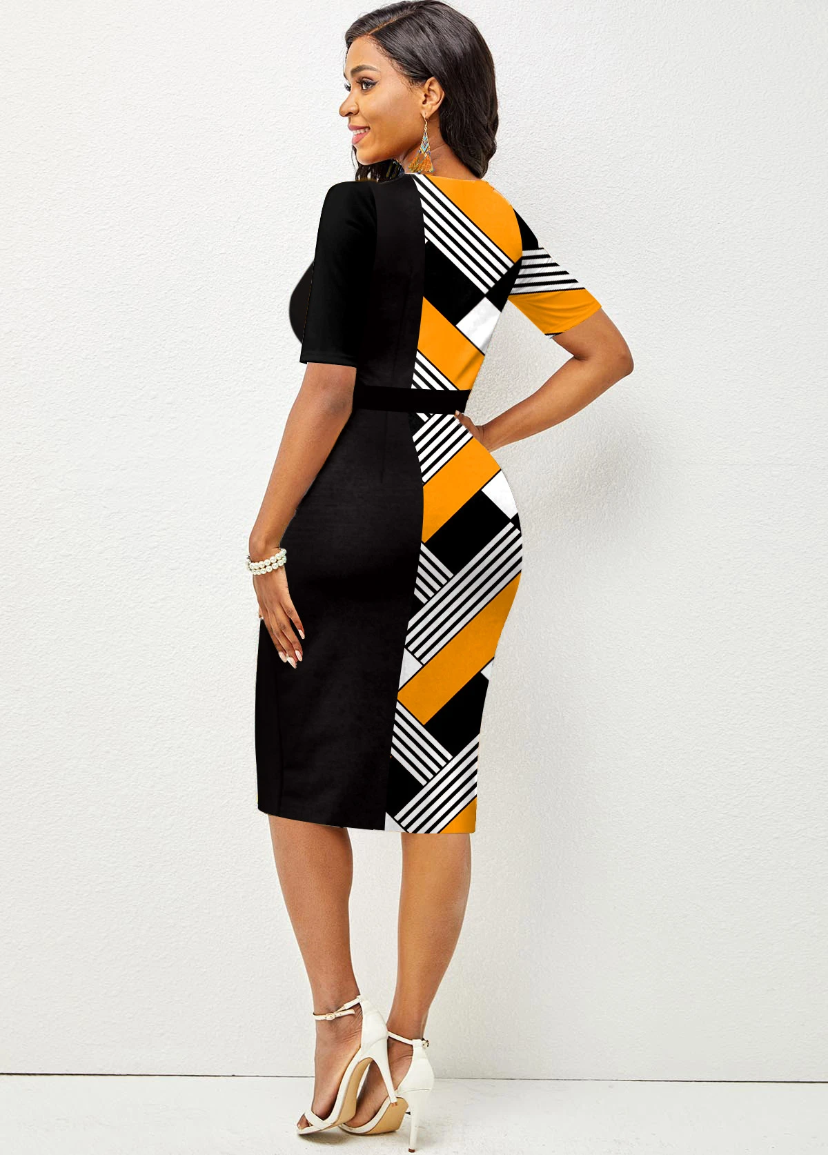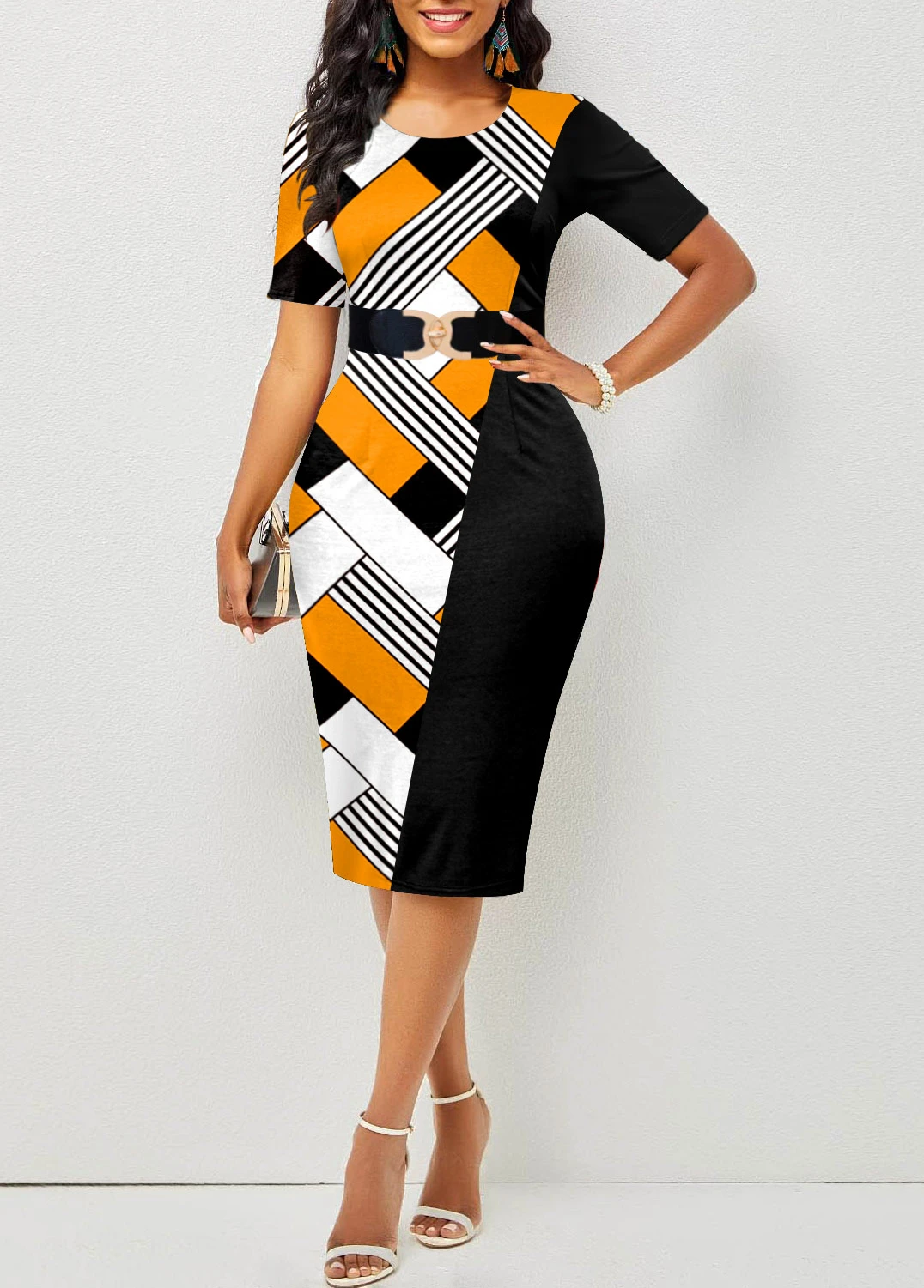 Be the first to review “Geometric Print Round Neck Yellow Bodycon Dress” Cancel reply