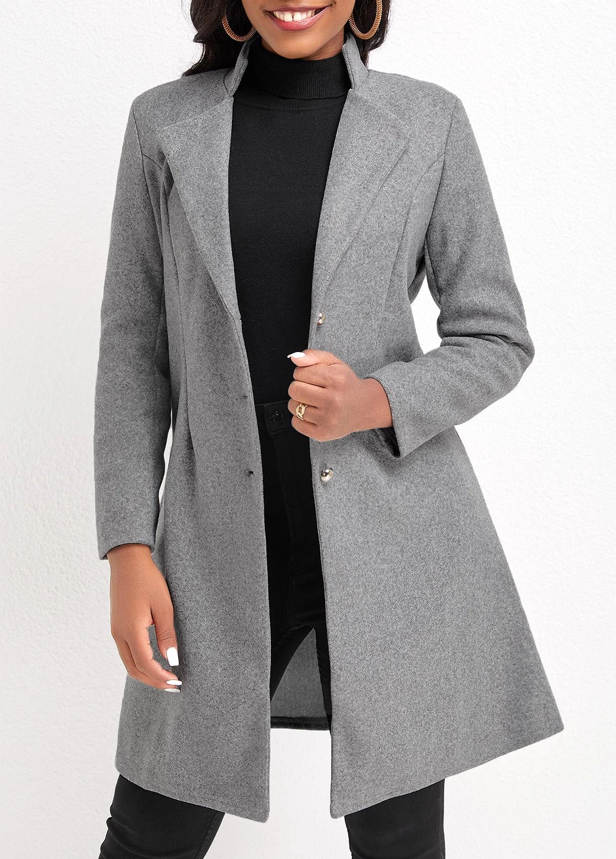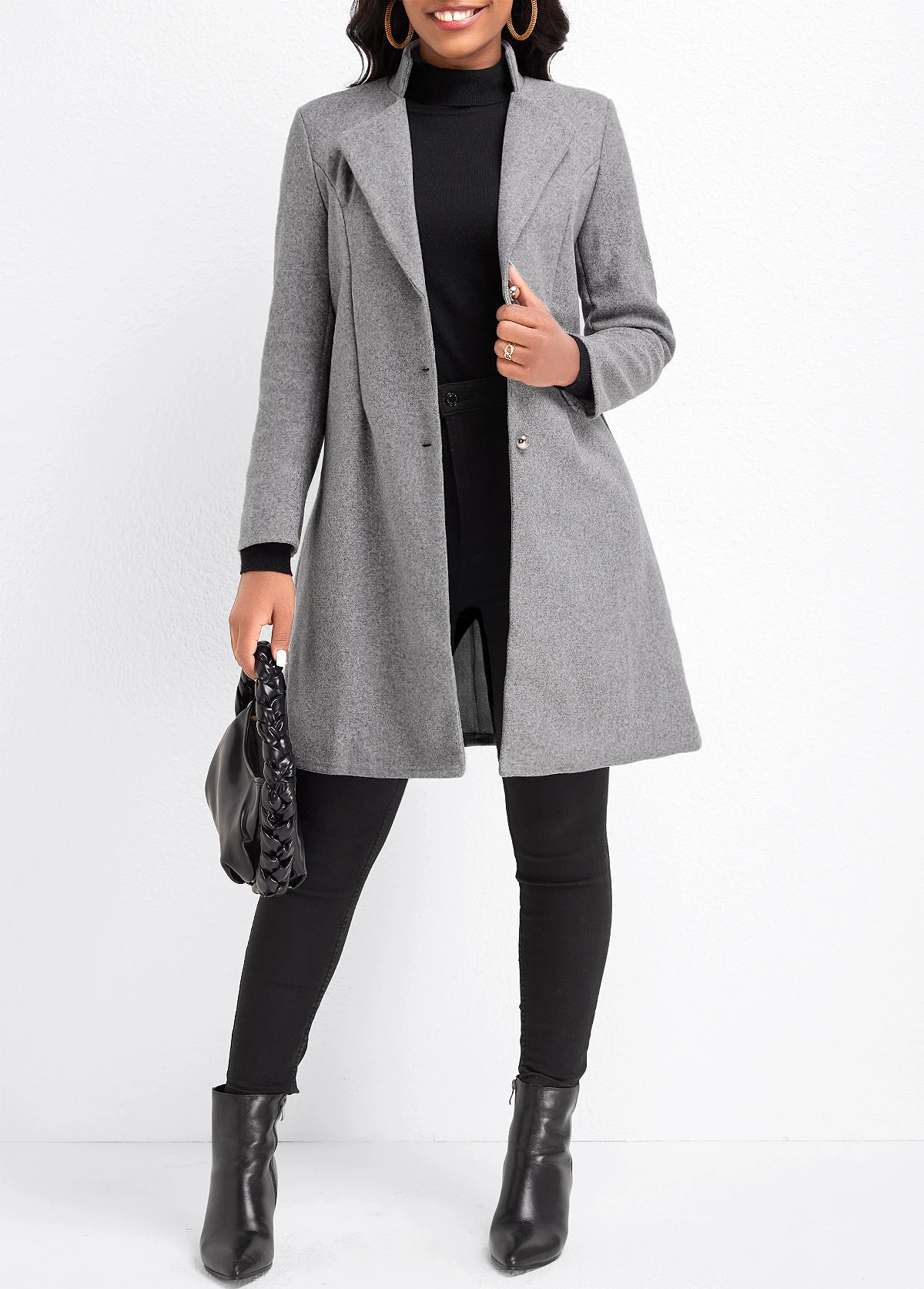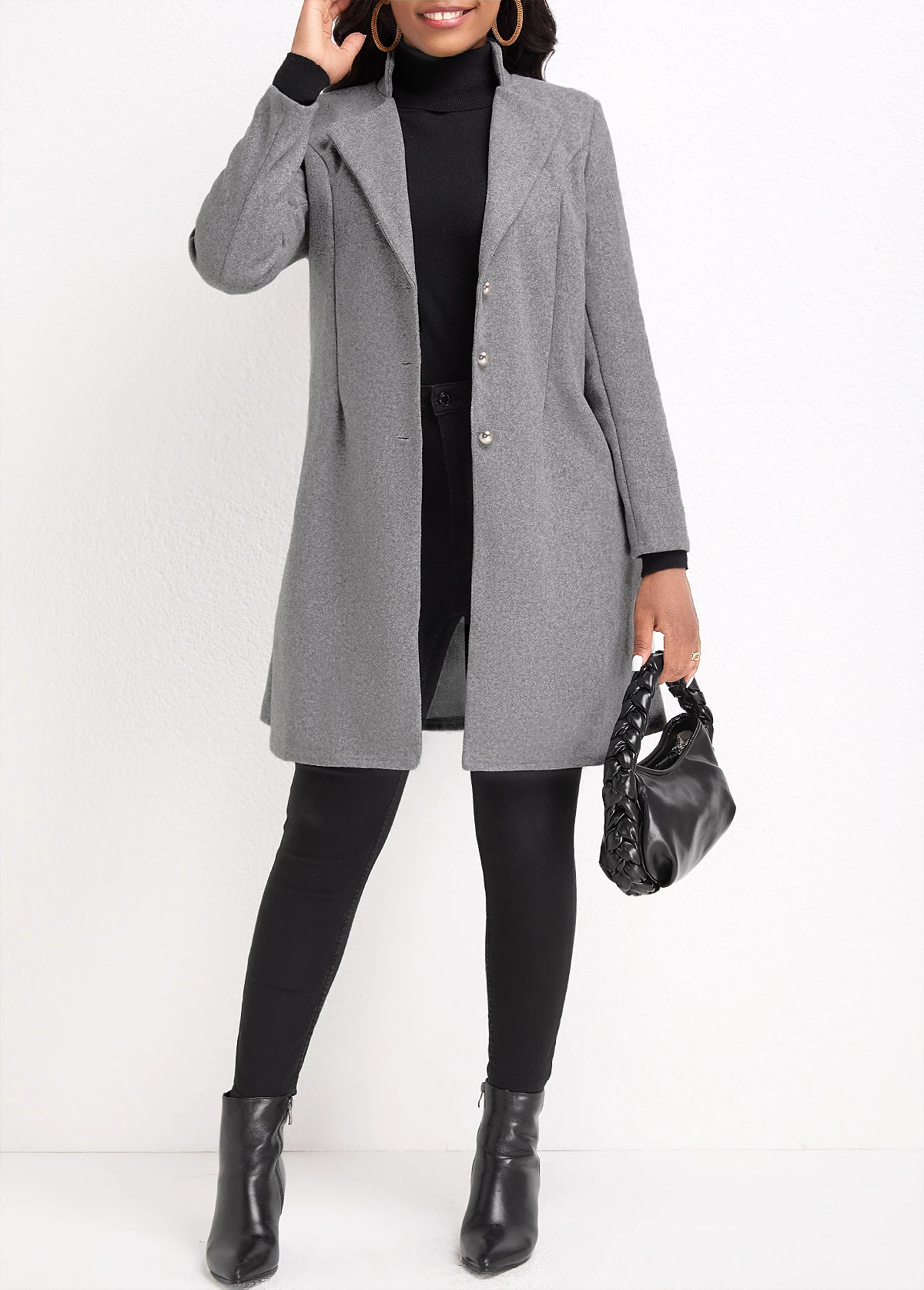 Be the first to review “Grey Button Long Sleeve Lapel Coat” Cancel reply