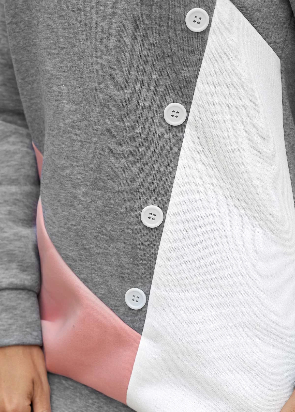 Grey Decorative Button Contrast Long Sleeve Hoodie
