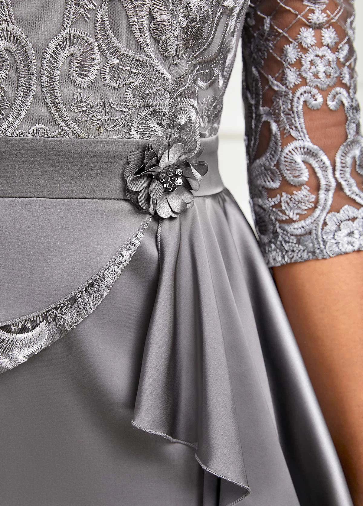 Grey Lace Stitching Peplum Waist Flounce Dress