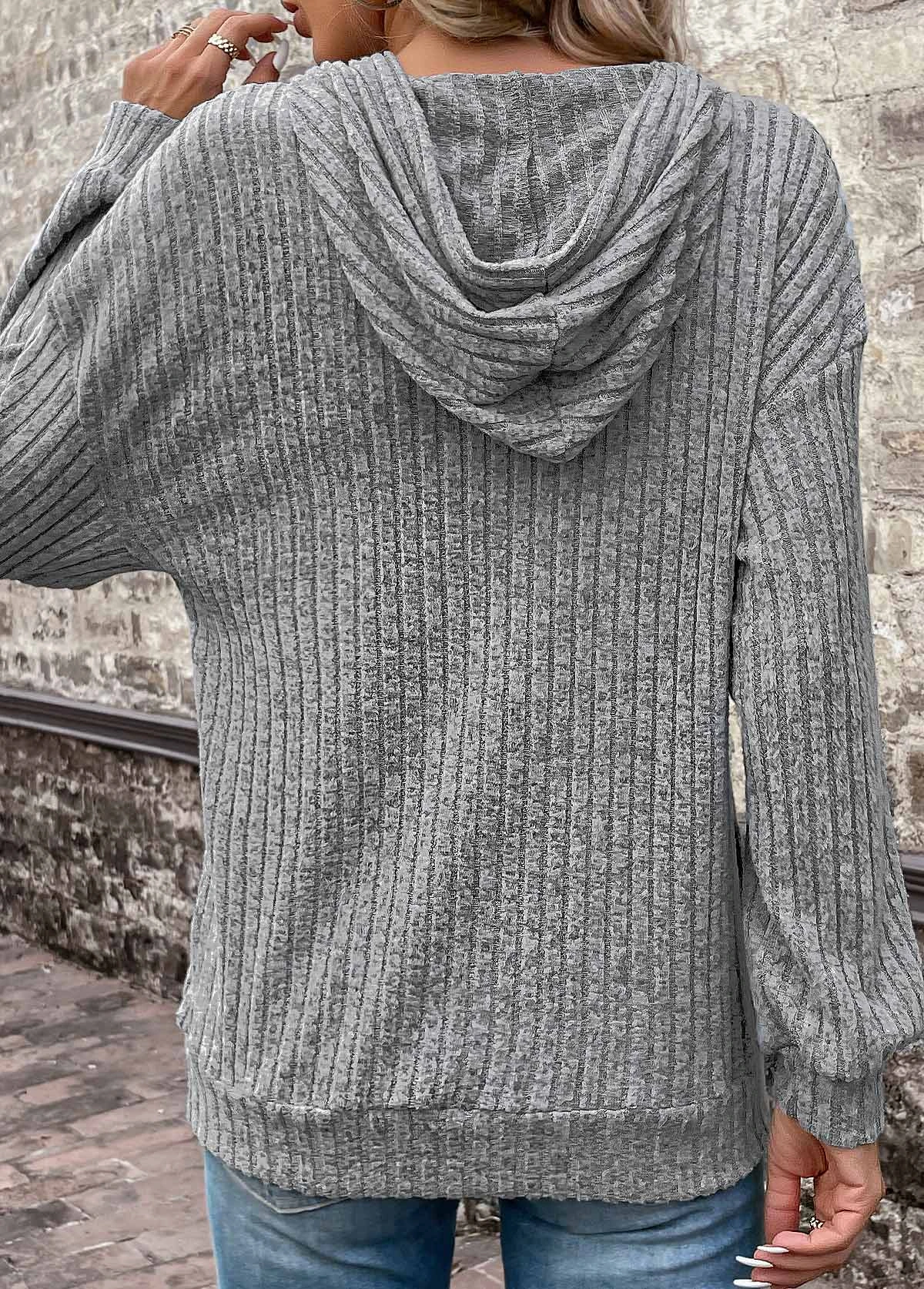 Grey Pocket Long Sleeve Hooded Sweatshirt