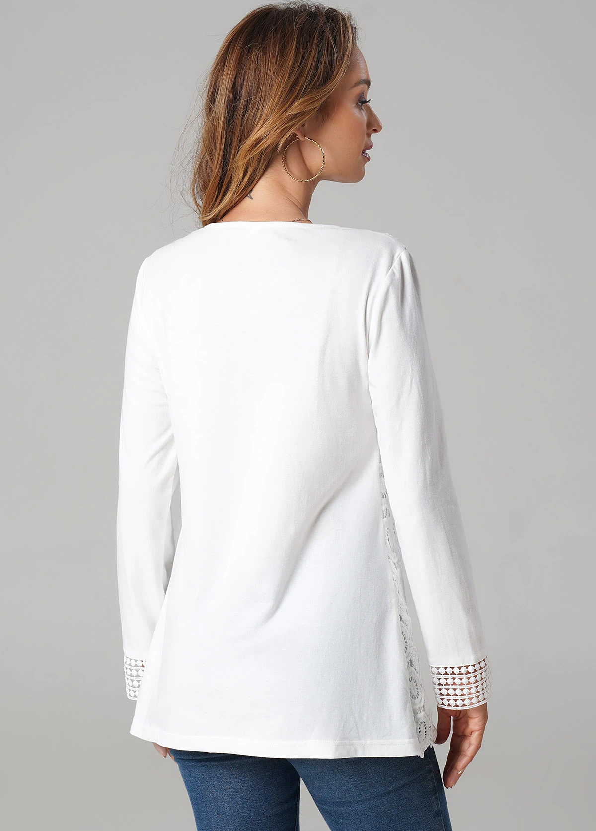 Lace Splicing Solid Long Sleeve V Neck T Shirt