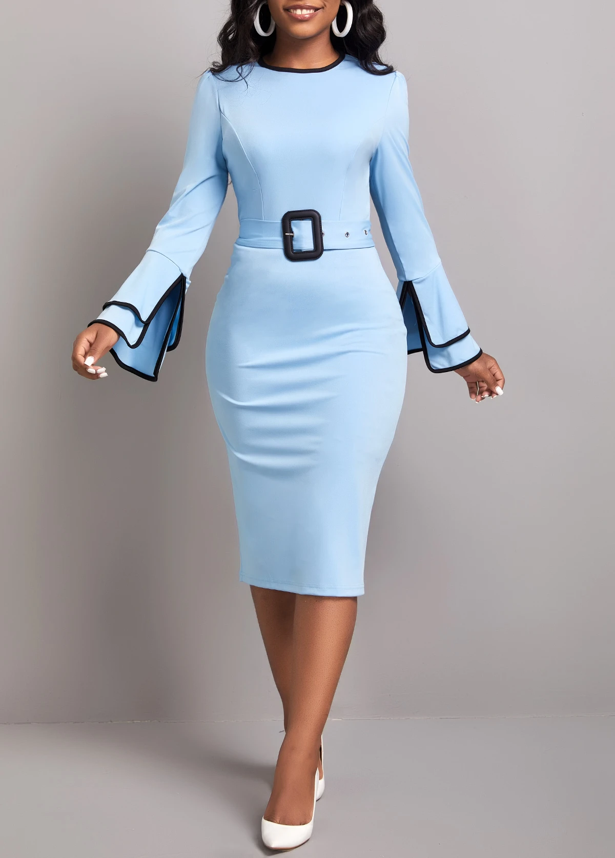Be the first to review “Light Blue Contrast Binding Belted Bodycon Dress” Cancel reply