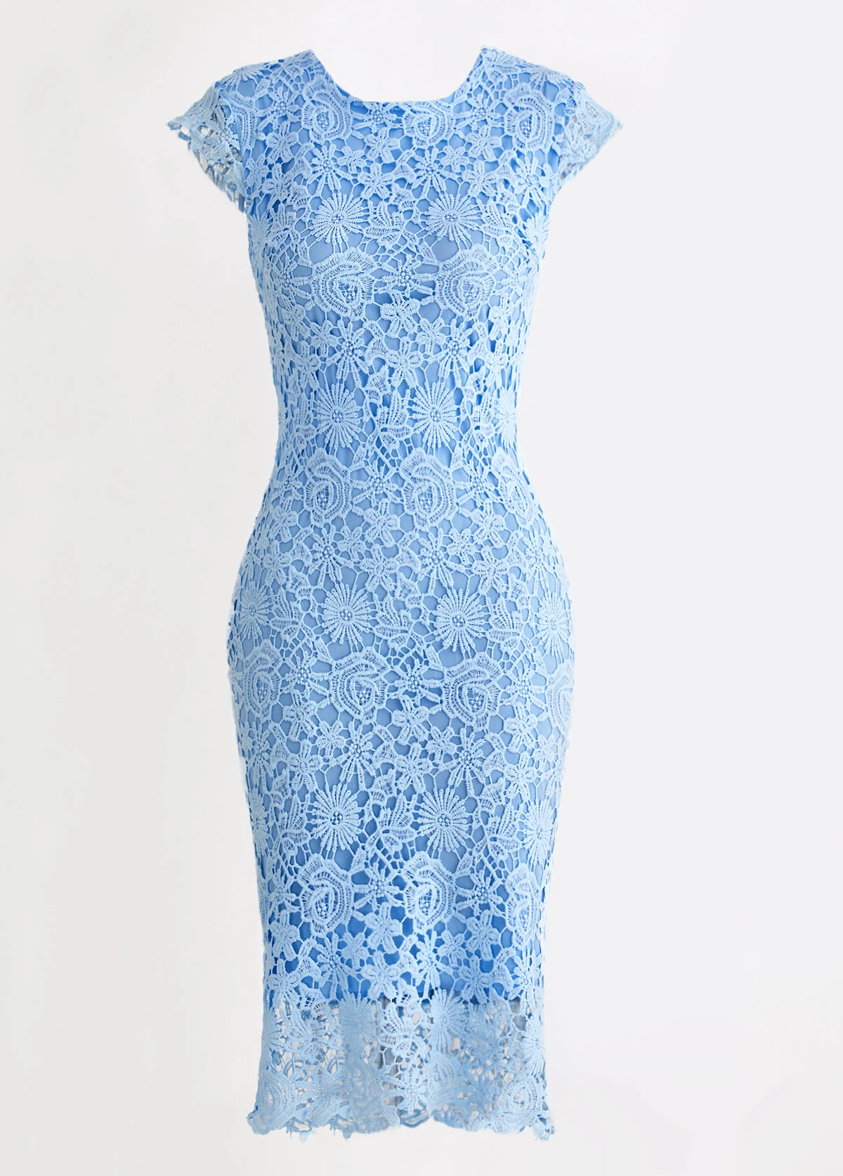Be the first to review “Light Blue Lace Short Sleeve Bodycon Dress” Cancel reply