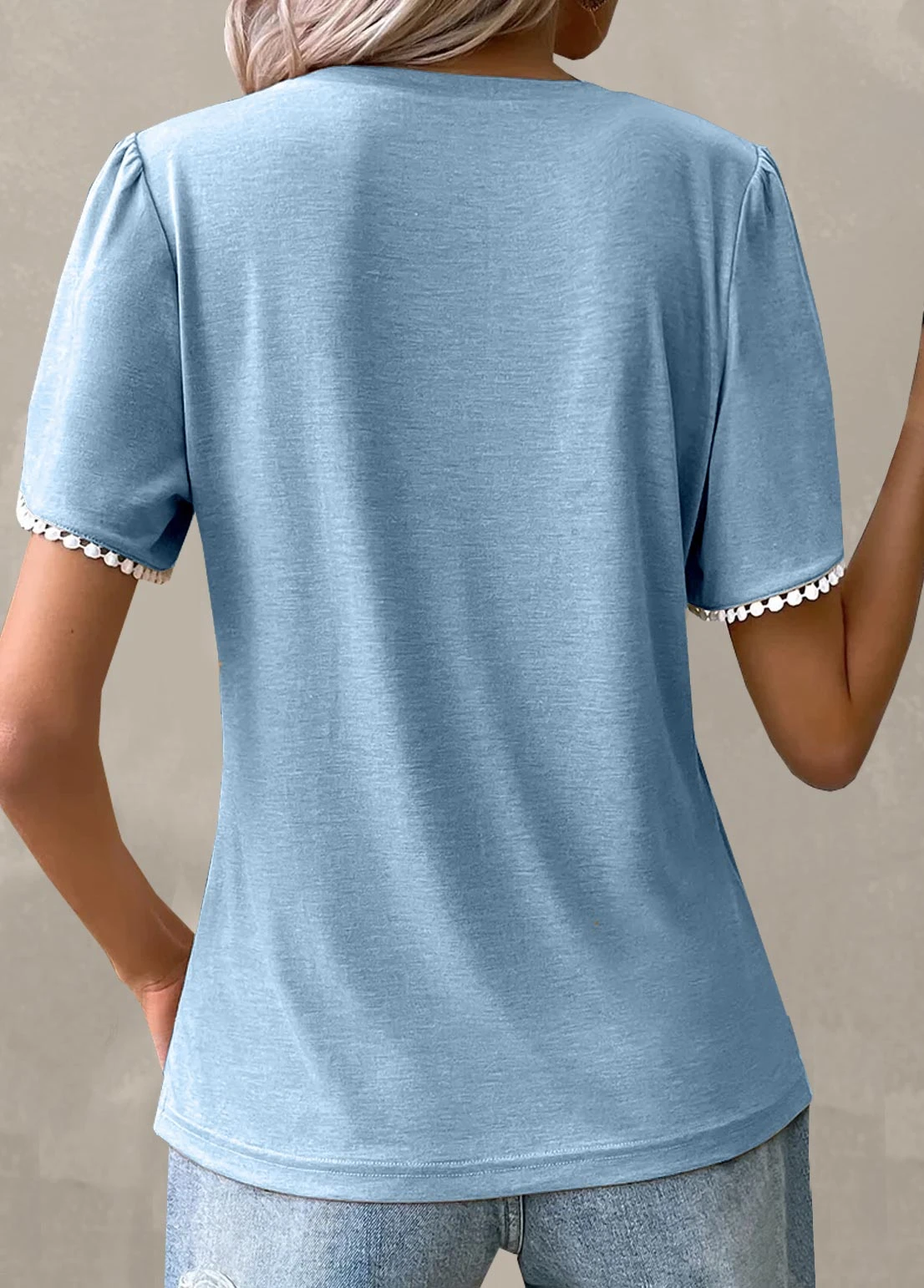 Light Blue Patchwork Short Sleeve T Shirt