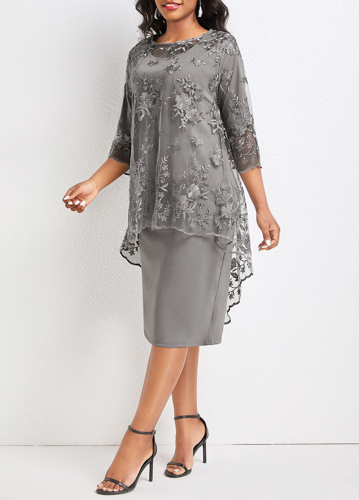 Light Grey Lace Layered Two Piece Dress