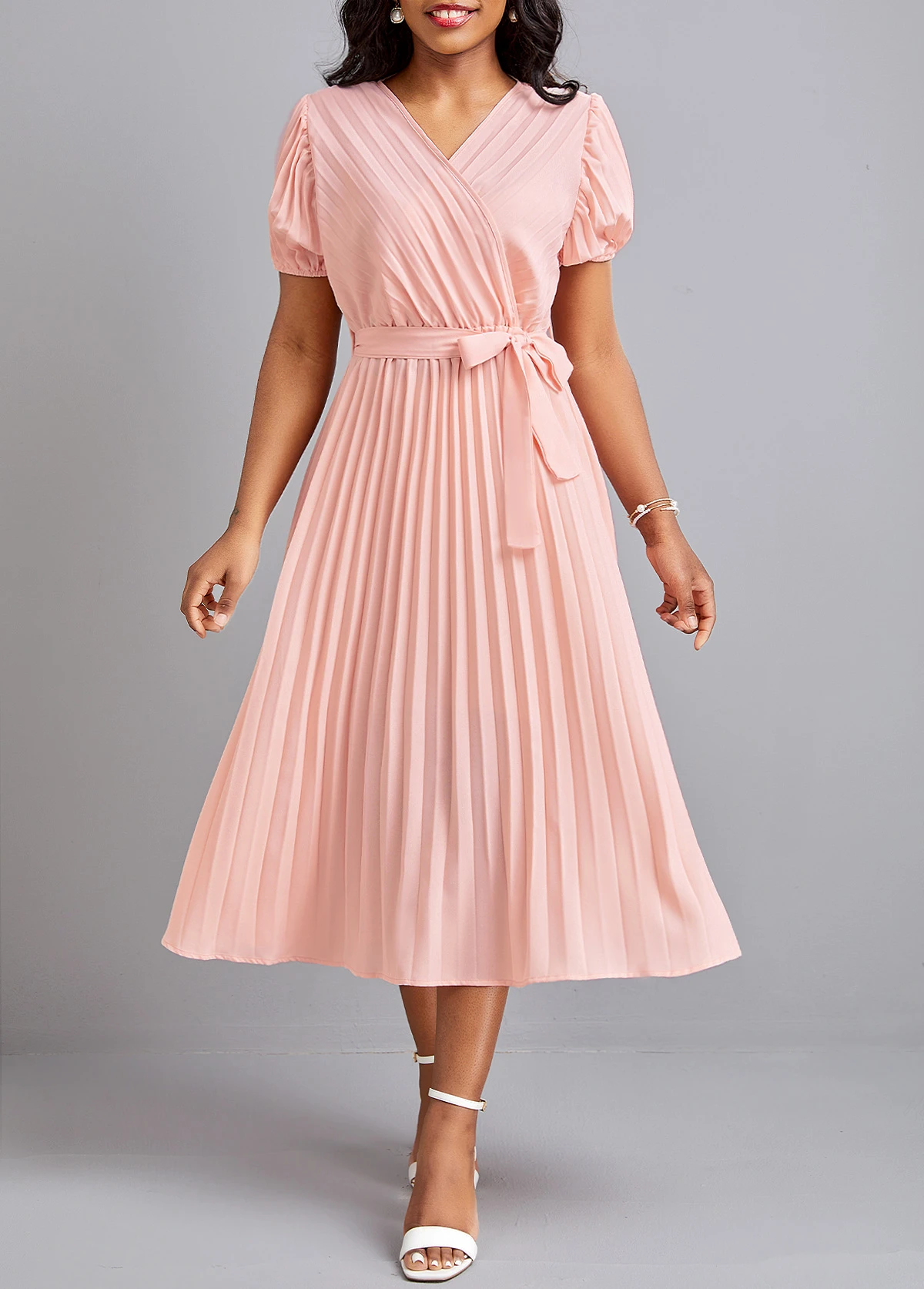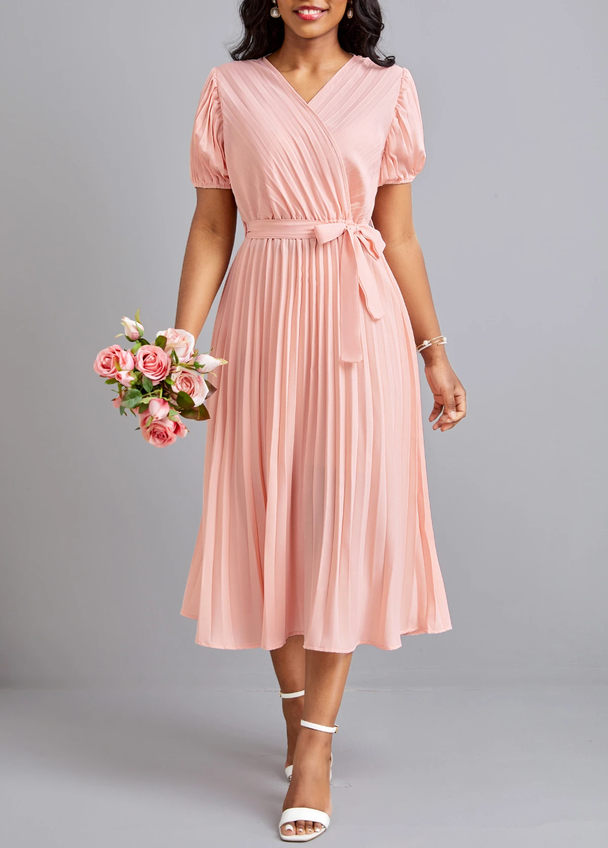 Be the first to review “Light Pink Pleated Belted Short Sleeve Dress” Cancel reply