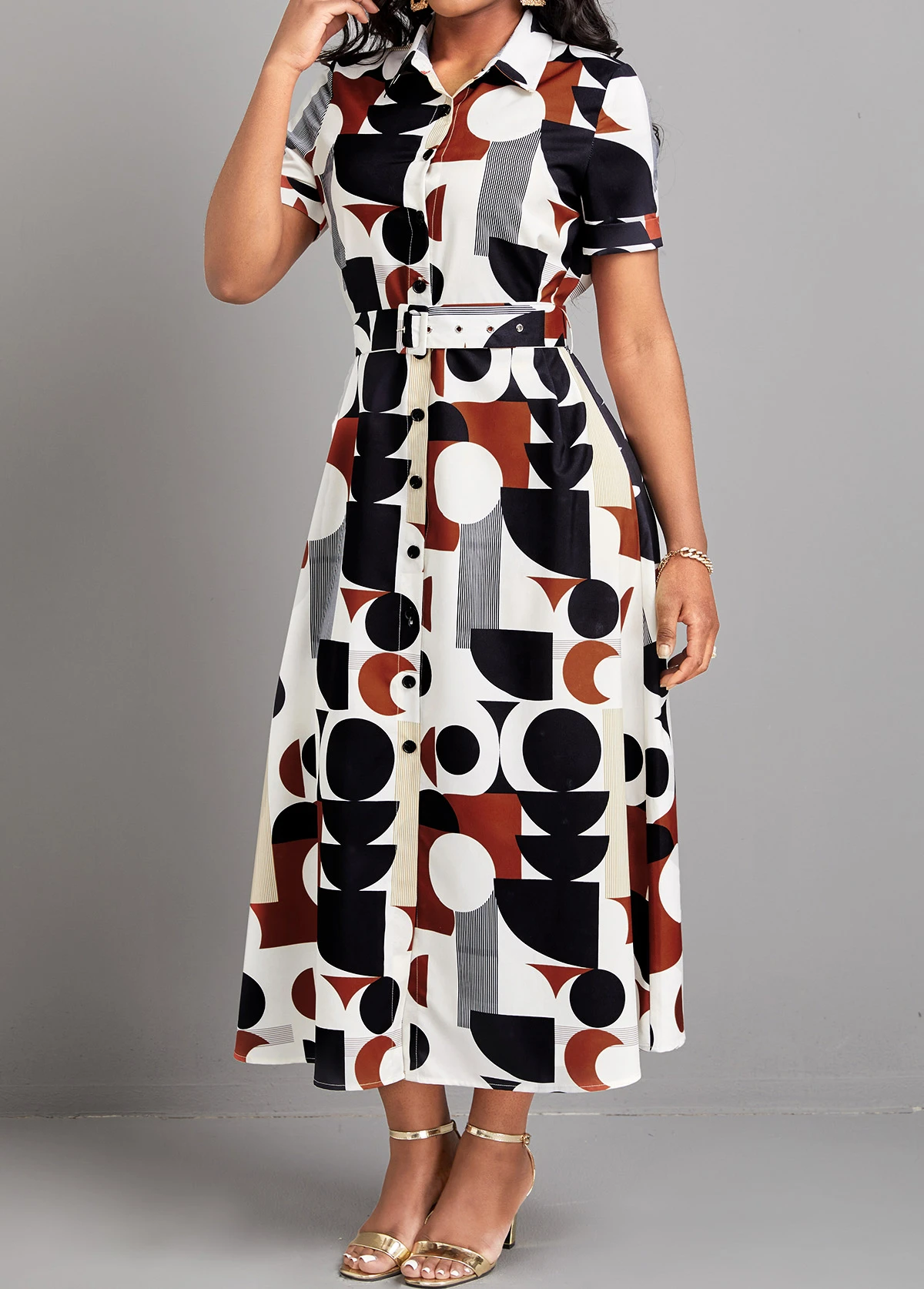 Be the first to review “Multi Color Button Geometric Print Belted Dress” Cancel reply