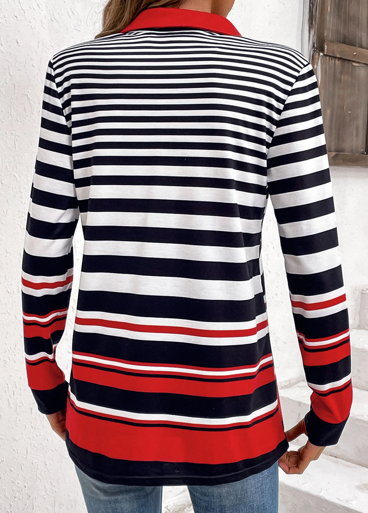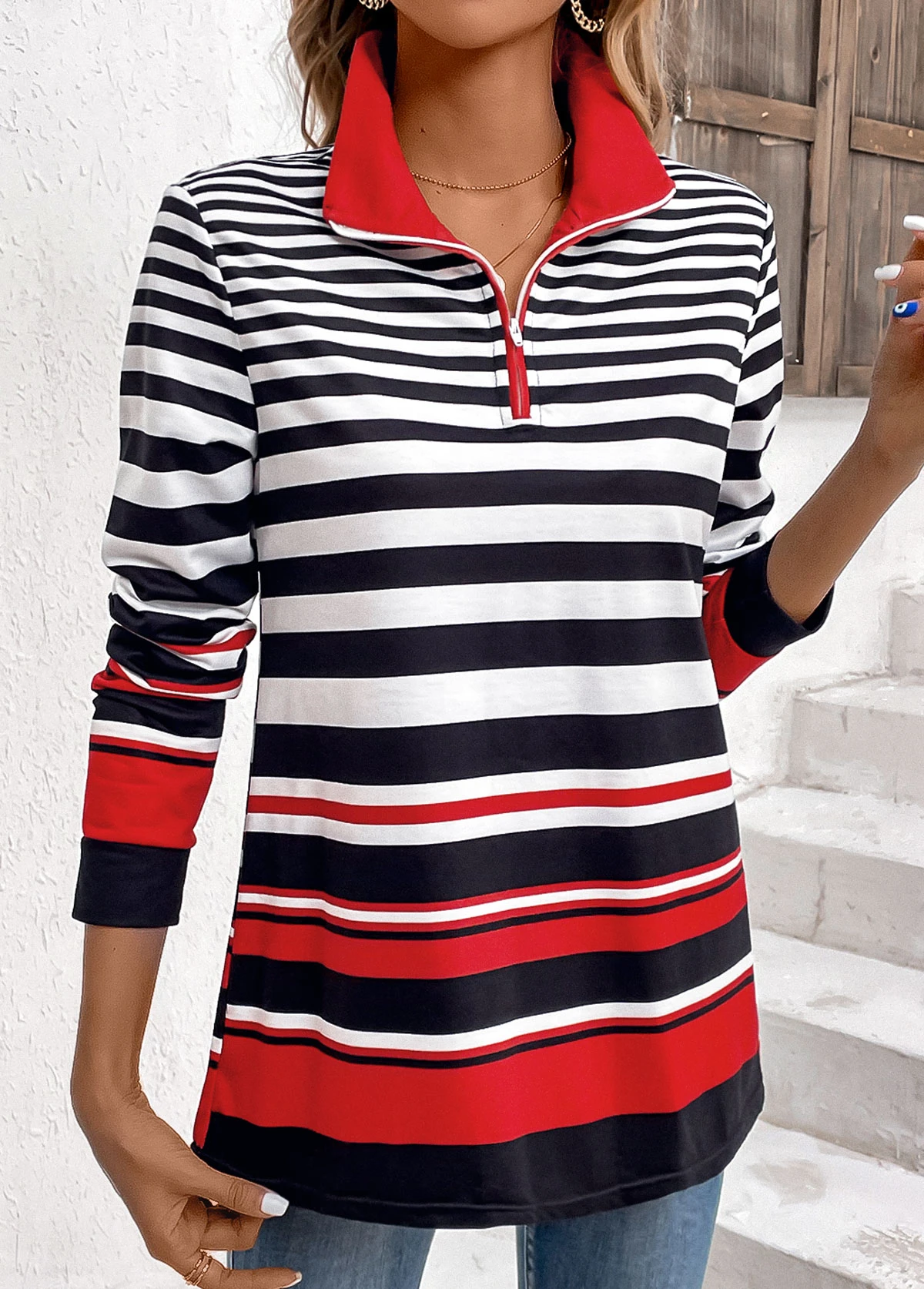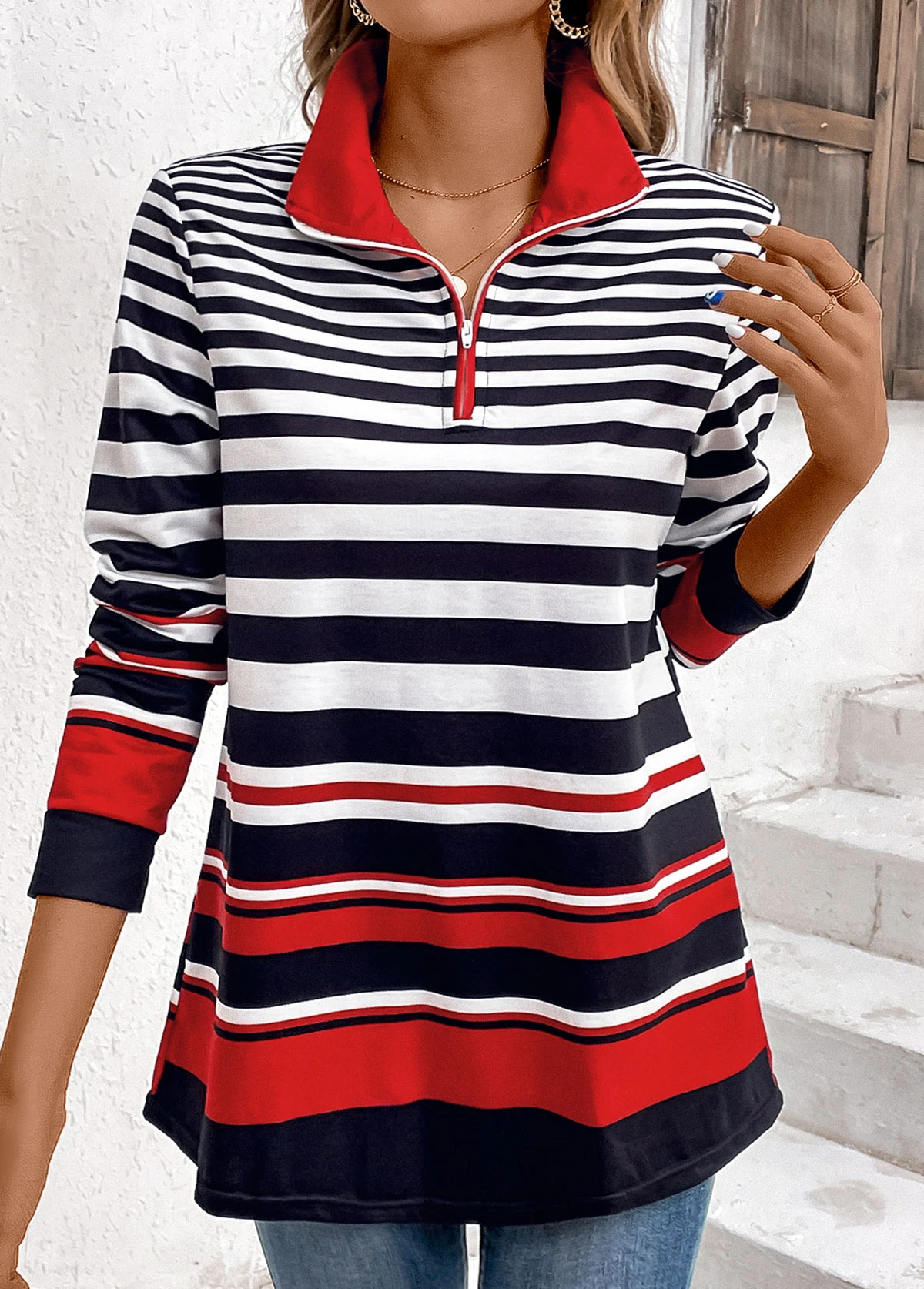 Multi Color Zipper Striped Long Sleeve Sweatshirt