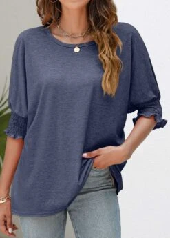 Navy Breathable Three Quarter Length Sleeve T Shirt