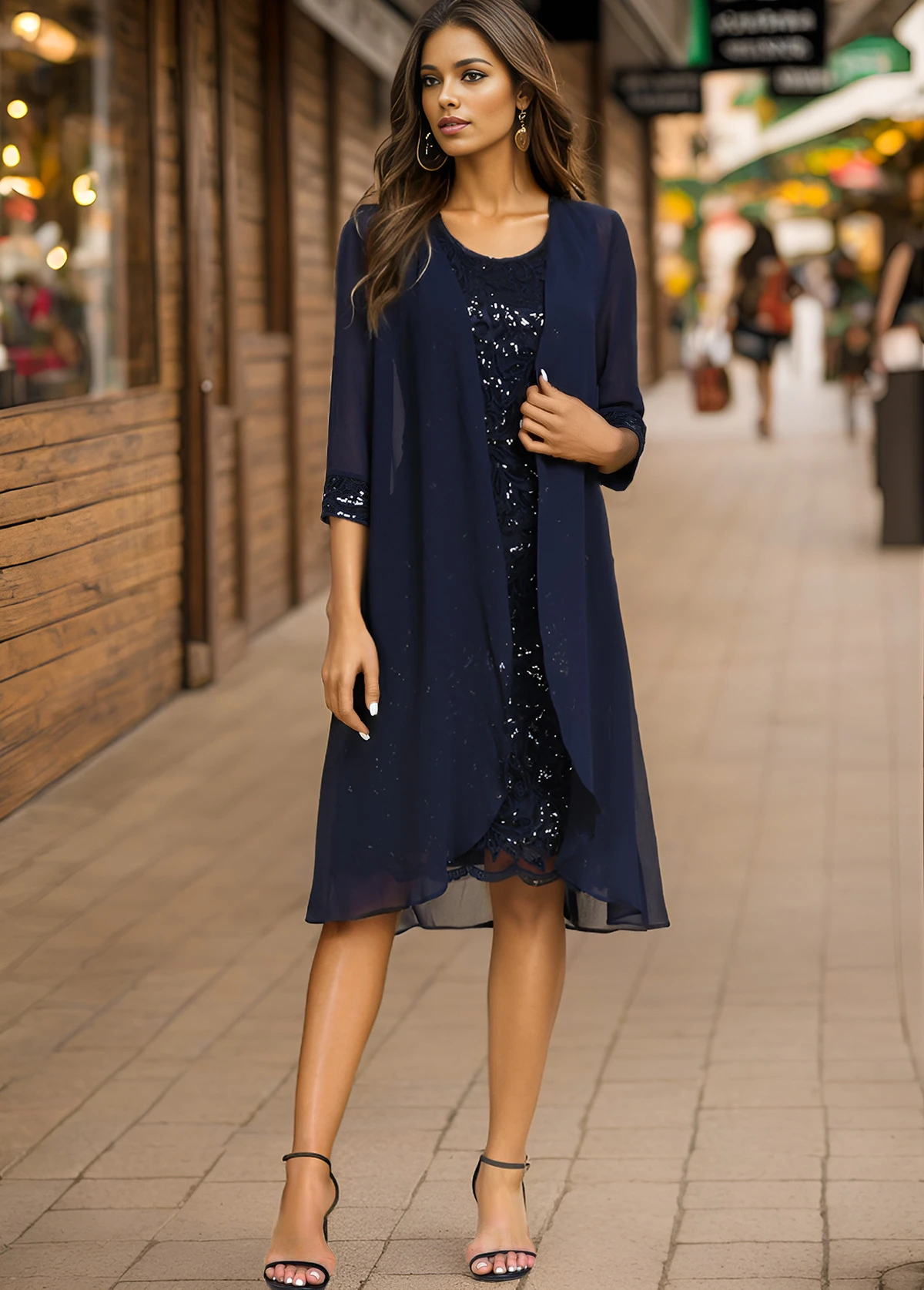 Be the first to review “Navy Lace Sequin Shift Dress And Cardigan” Cancel reply