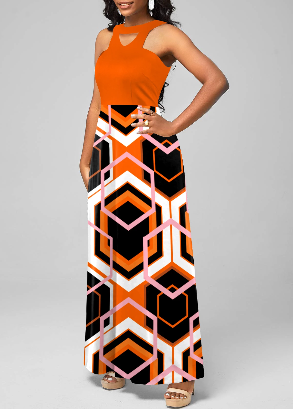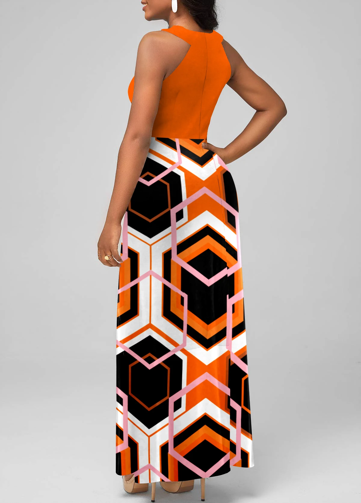 Be the first to review “Orange Geometric Print Halter Maxi Dress” Cancel reply