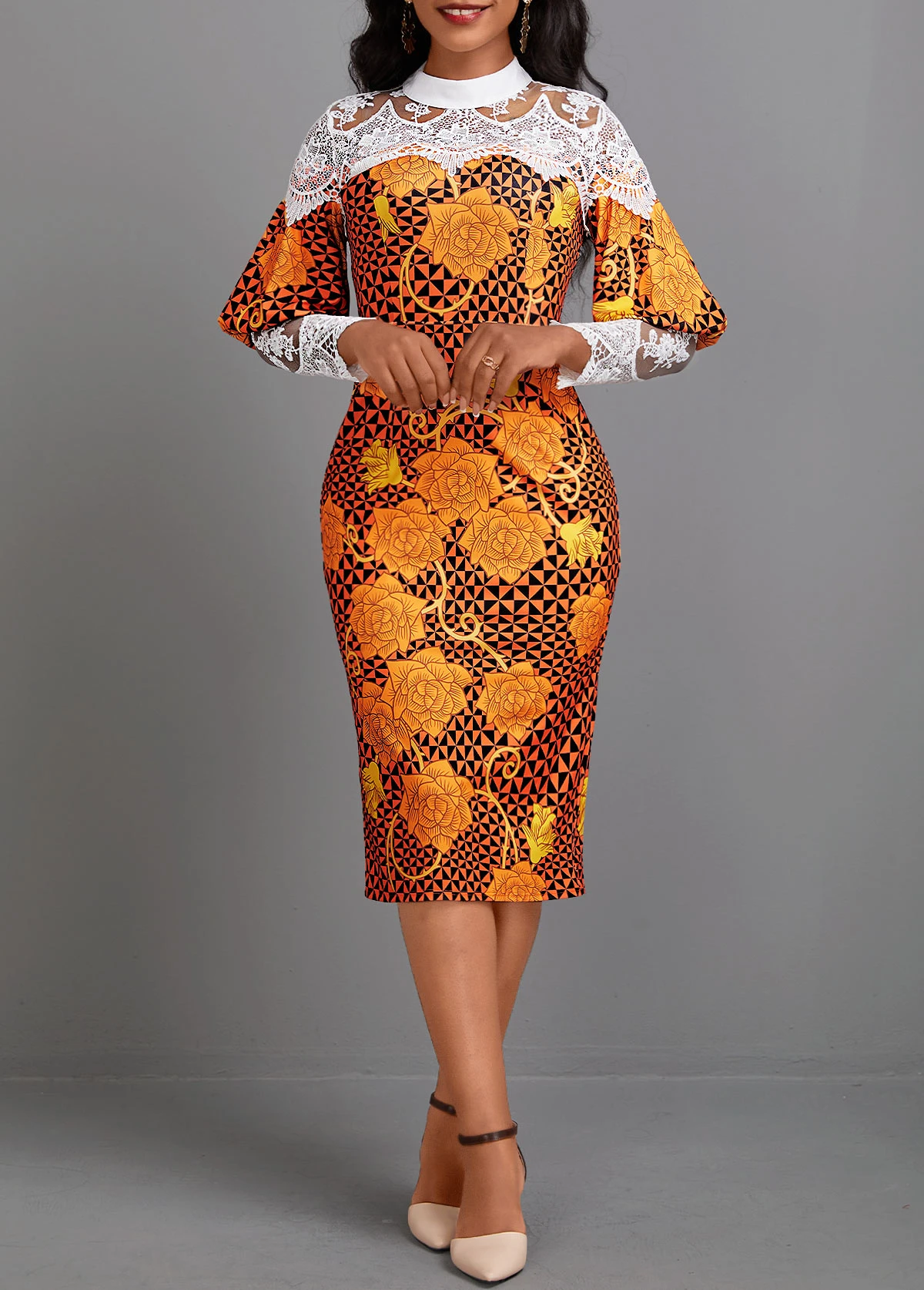 Be the first to review “Orange Patchwork Random Floral Print Long Sleeve Dress” Cancel reply