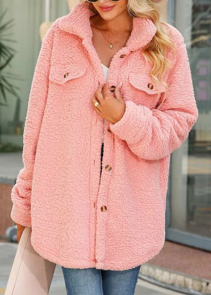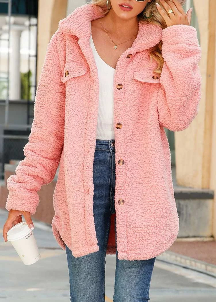 Be the first to review “Pink Button Long Sleeve Turn Down Collar Coat” Cancel reply