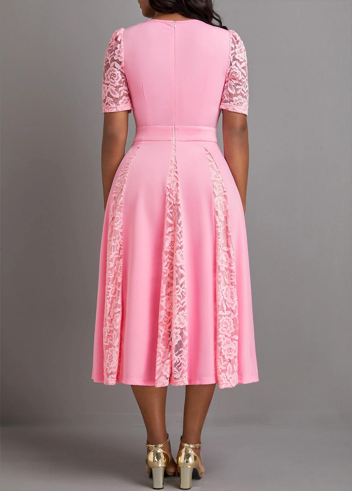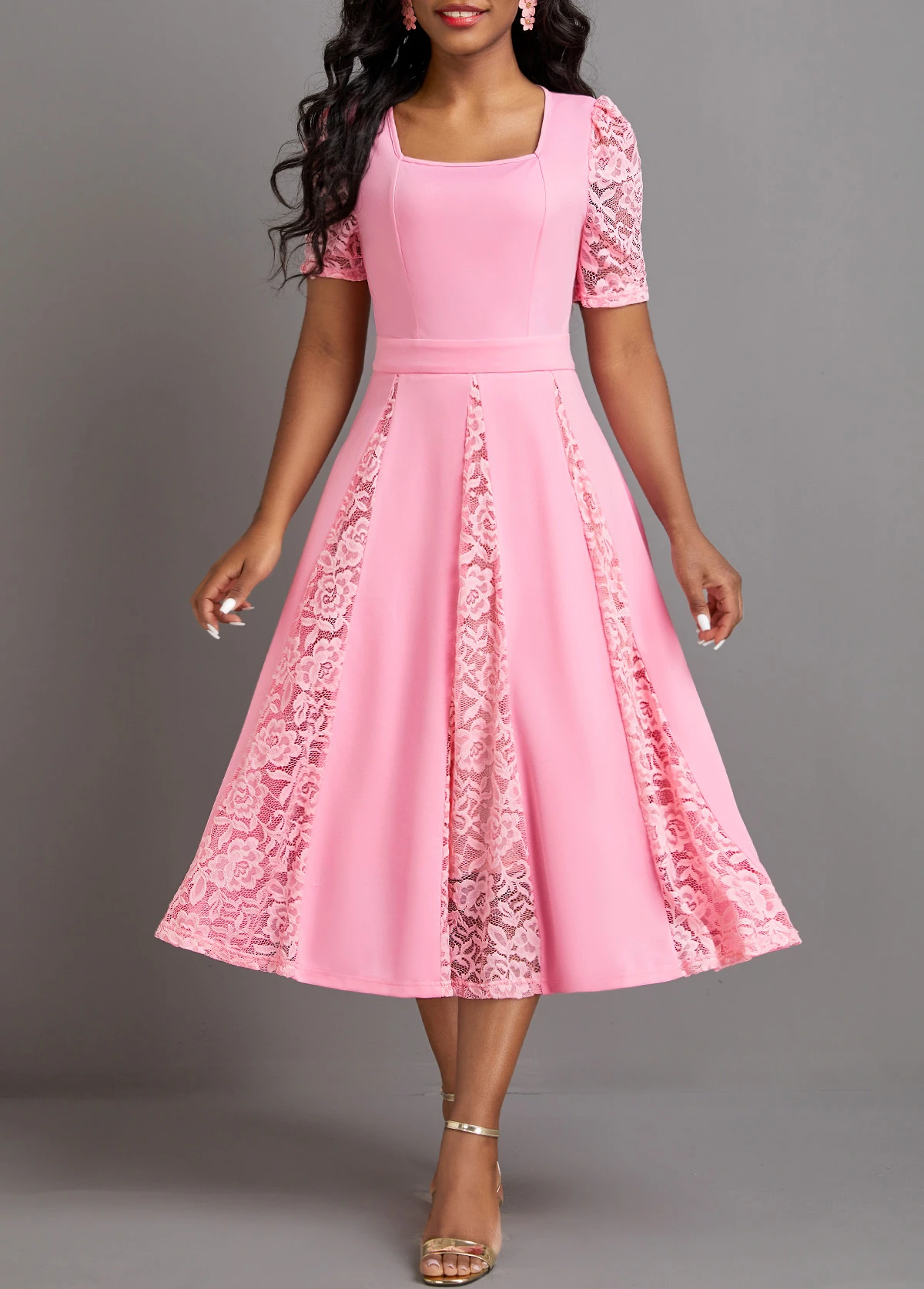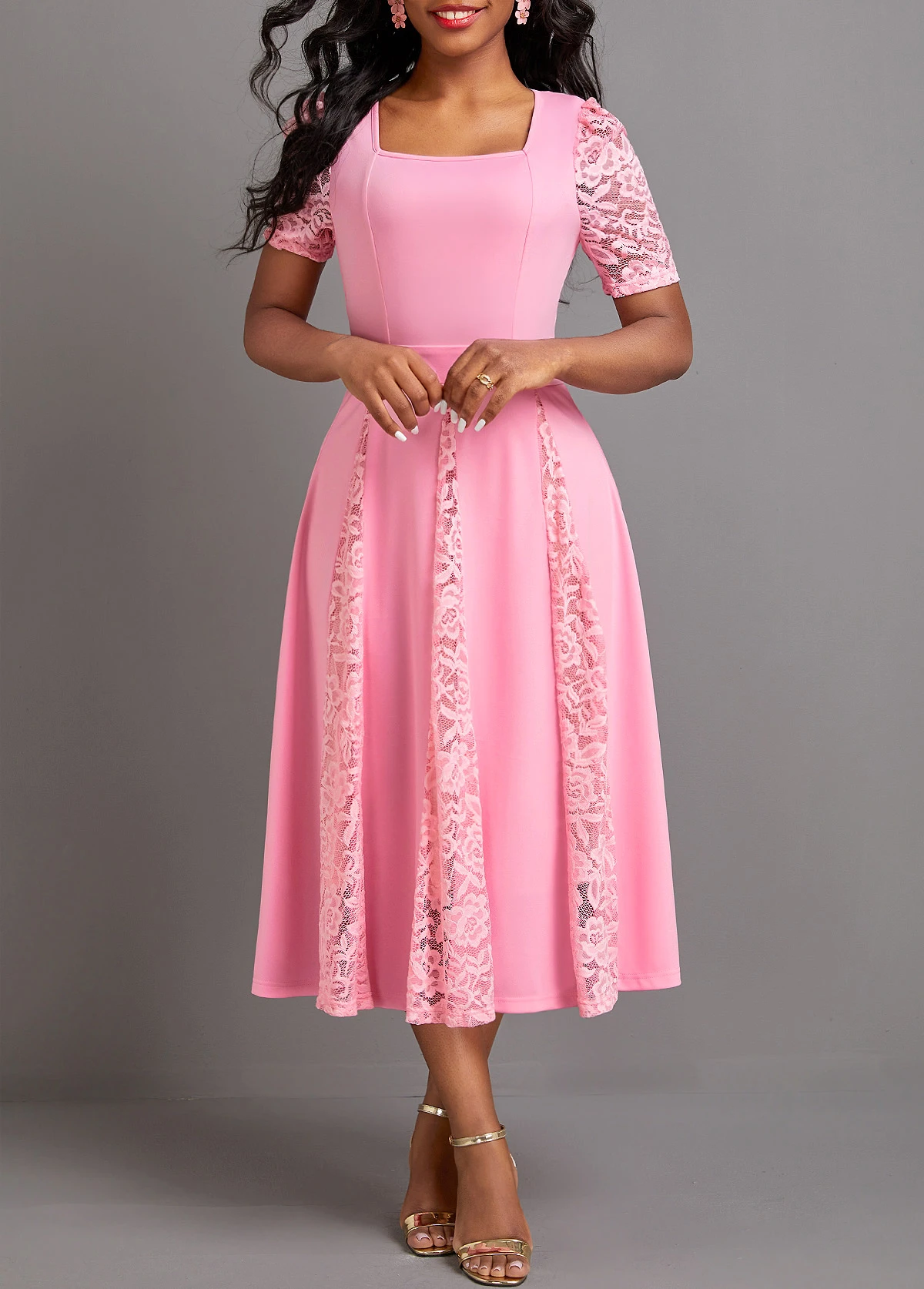 Be the first to review “Pink Patchwork Half Sleeve Square Neck Dress” Cancel reply