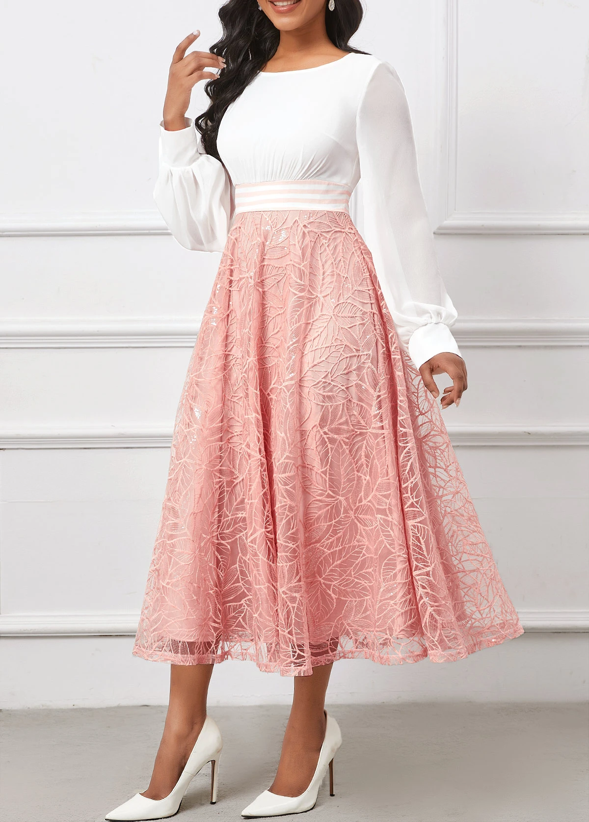 Be the first to review “Pink Sequin Long Sleeve Round Neck Dress” Cancel reply